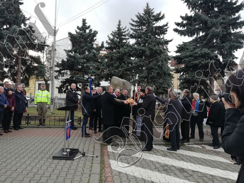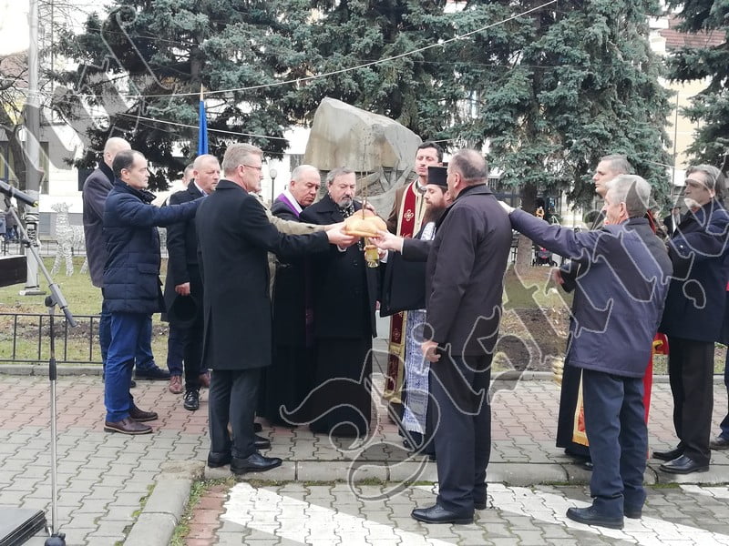 Monumentul a fost sfințit, iar prefectul Stelian Dolha și președintele Asociației 22 Decembrie, fostul prefect Ovidiu Frenț, au avut un scurt discurs comemorativ al evenimentelor din 1989. Cei doi au fost și cei ce au dezvelit Monumentul Revoluției.