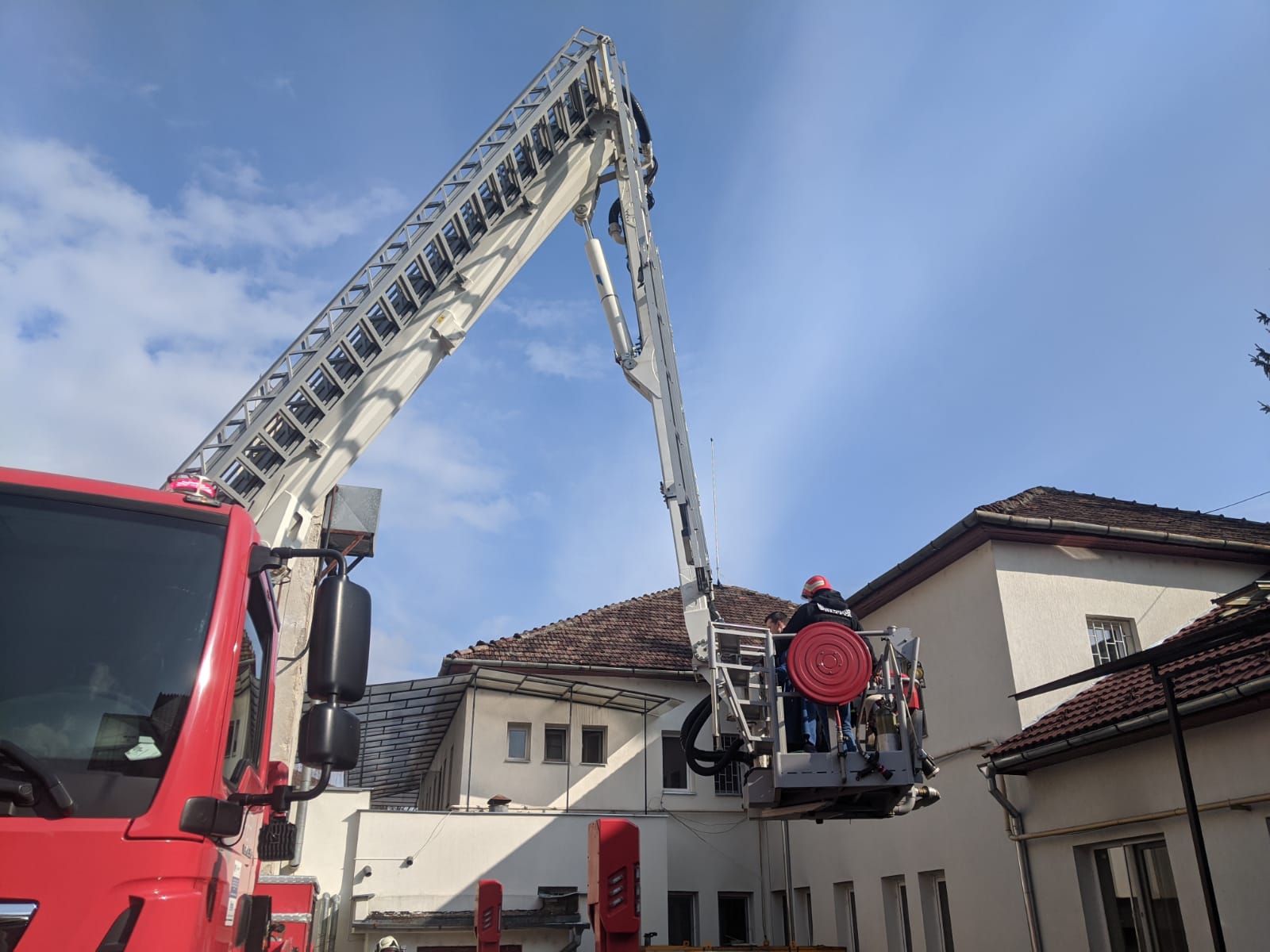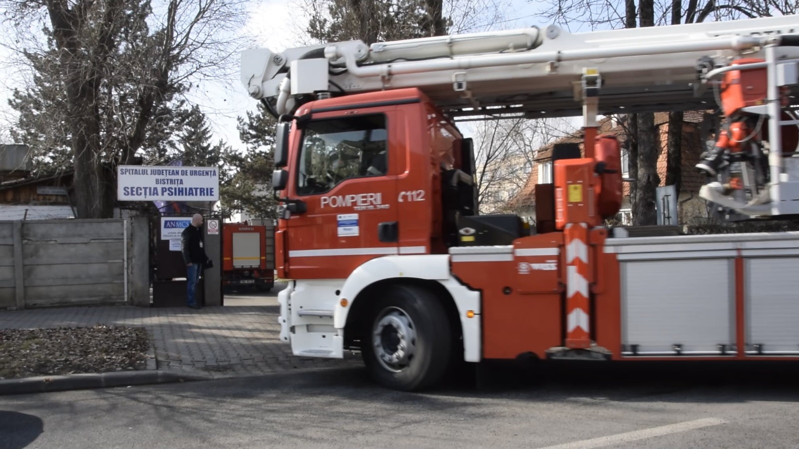 Echipaje ale pompierilor și ale poliției au fost prezente azi pe Someșului, la secția de Psihiatrie a Spitalului Județean de Urgență Bistrița. O persoană a fost intoxicată cu fum și una a fost coborâtă, după negocieri, de pe acoperiș.