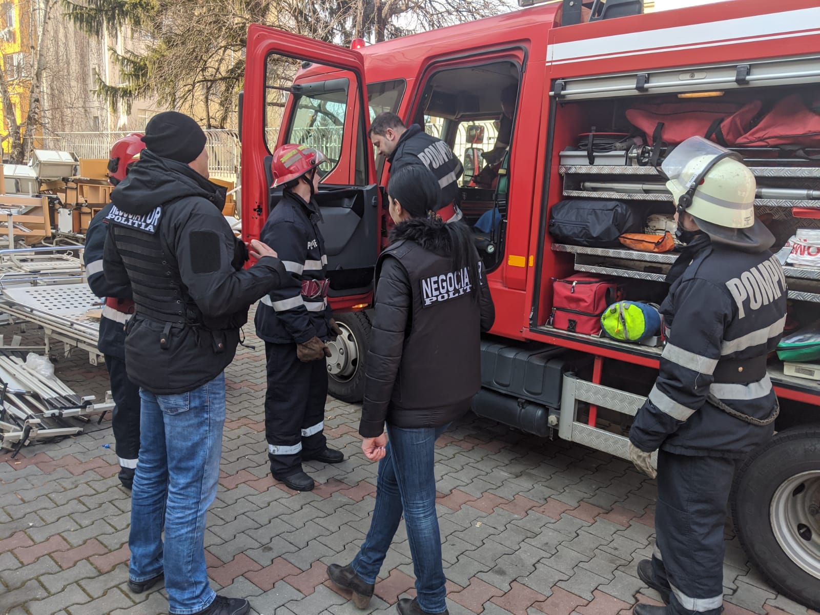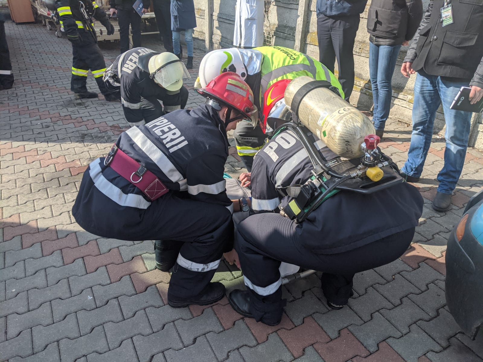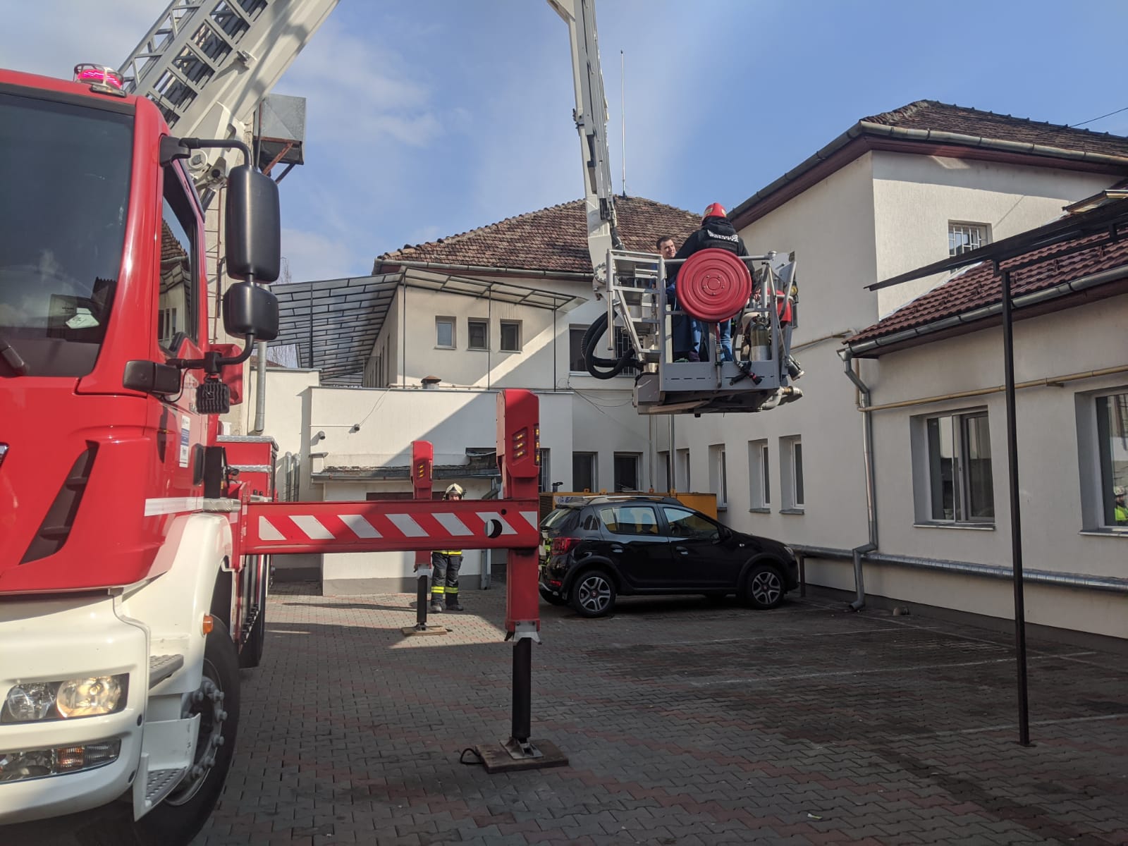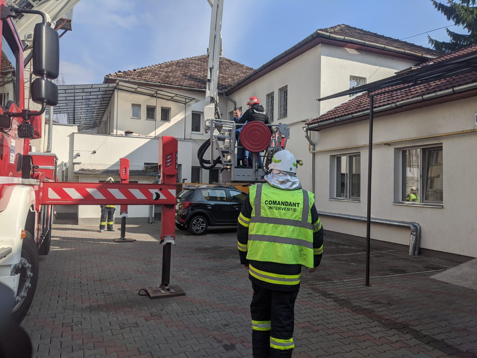 În timpul intervenției, un „pacient” a ajuns pe acoperișul clădirii. A fost solicitat un echipaj al poliției cu negociator.