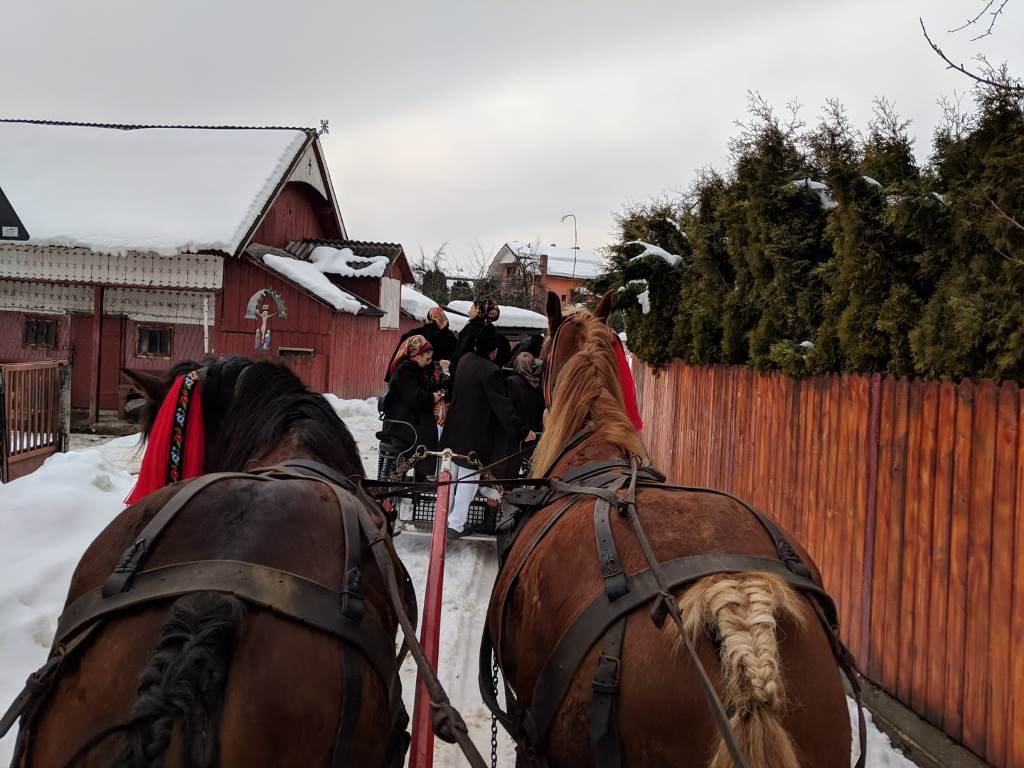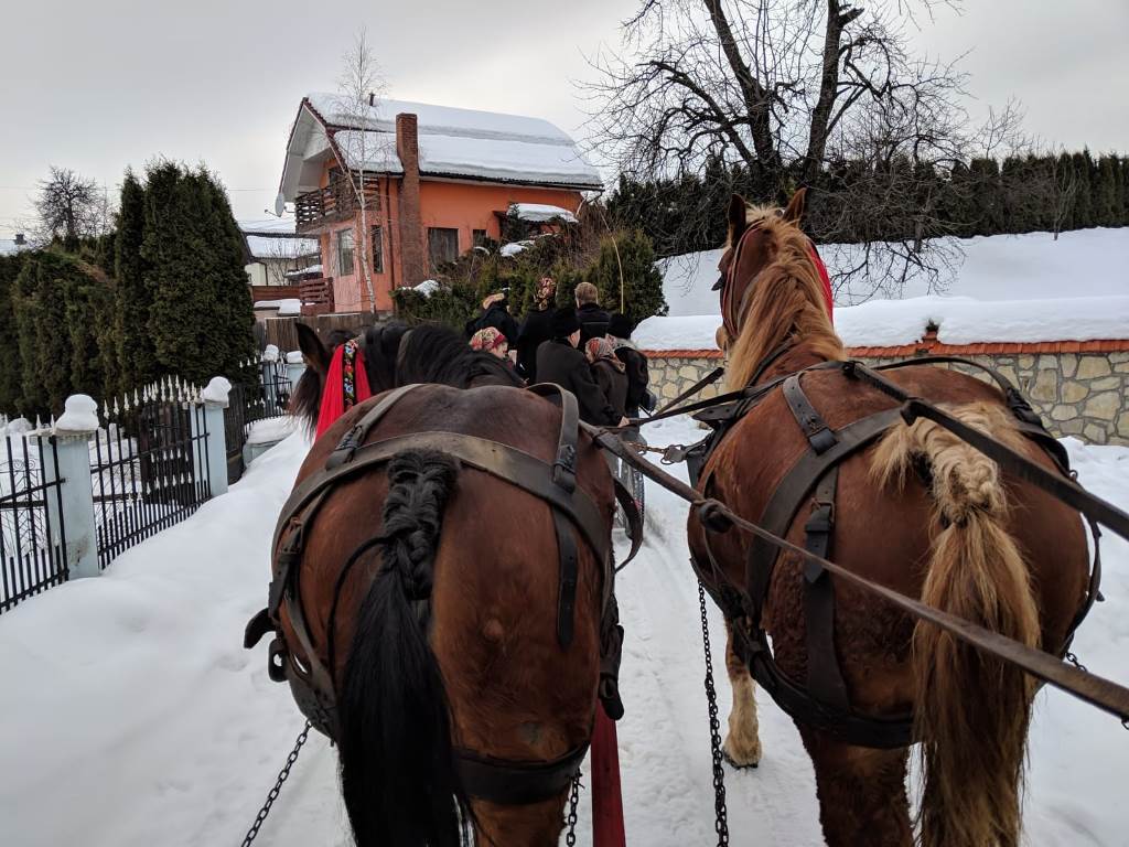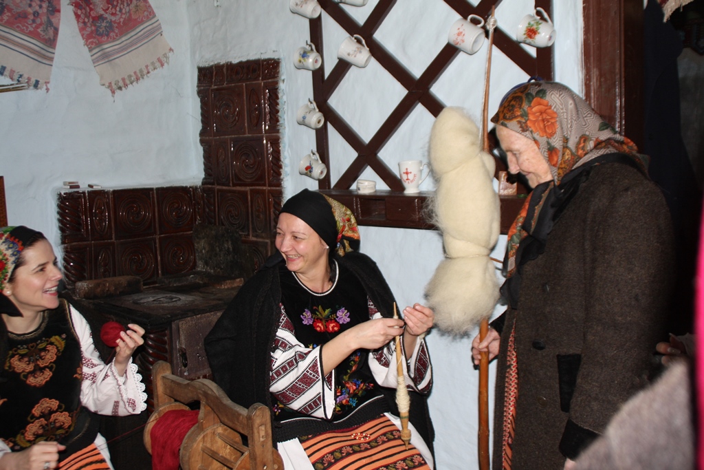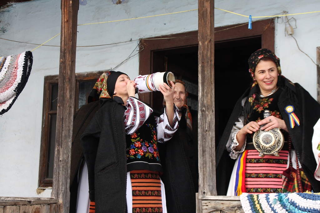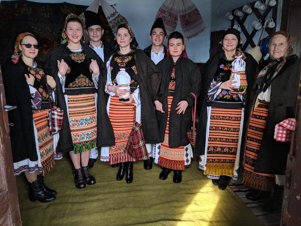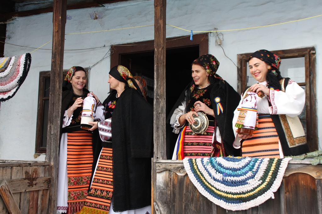 Așa că, anul acesta, au transformat o zi din concediul petrecut acasă într-un tribut adus tradiției. Nina a venit cu ideea de a organiza o șezătoare ca acum 100 de ani. Și-a adunat prietenii pe care i-a rugat să se îmbrace în straie tradiționale, au cântat, au dansat au cusut și tricotat și chiar s-au plimbat pe ulițele satului cu căruțe trase de cai, animalele fiind și ele împodobite corespunzător.