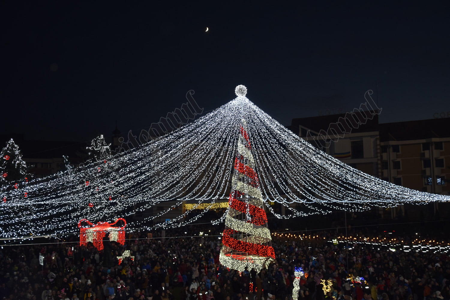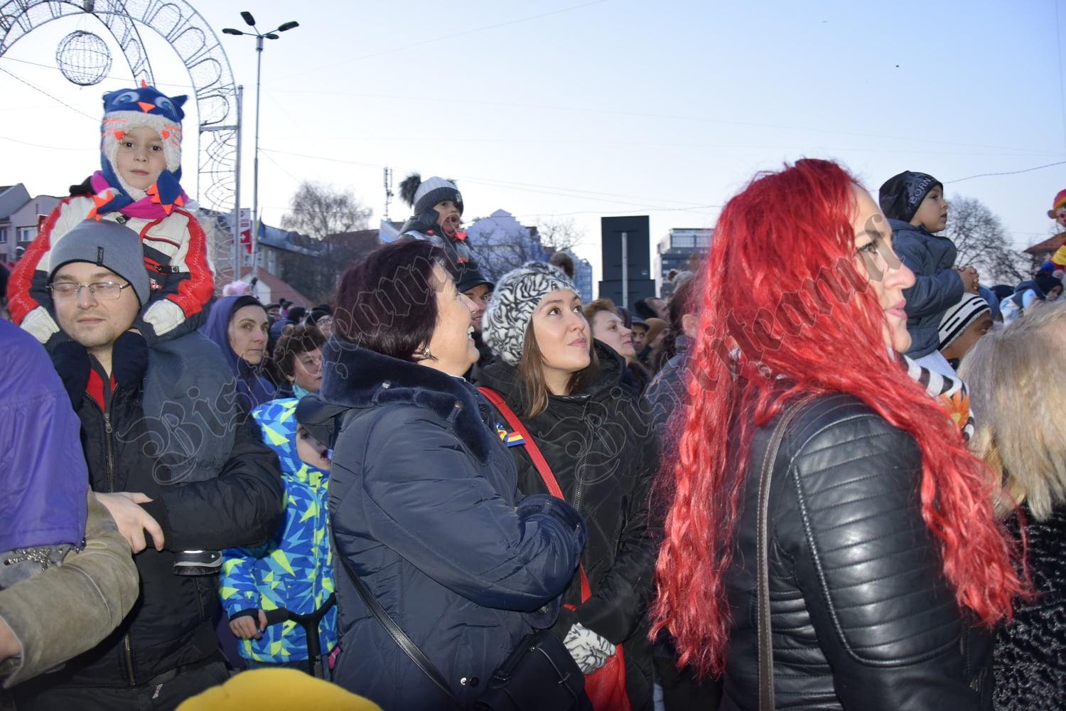 La ora 17:00, în zonă au sosit militarii, cu torțele aprinse. Iar imediat după, s-a numărat și s-au aprins beculețele. Apoi, cu toții au fost entuziasmați de spectaculosul foc de artificii care a strălucit de la baza Monumentului Eroilor din Piața Petru Rareș.