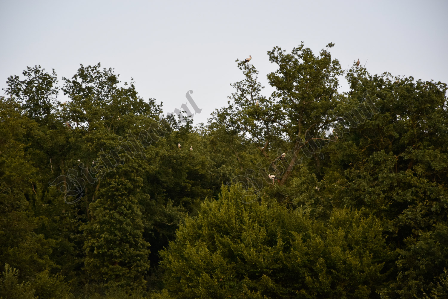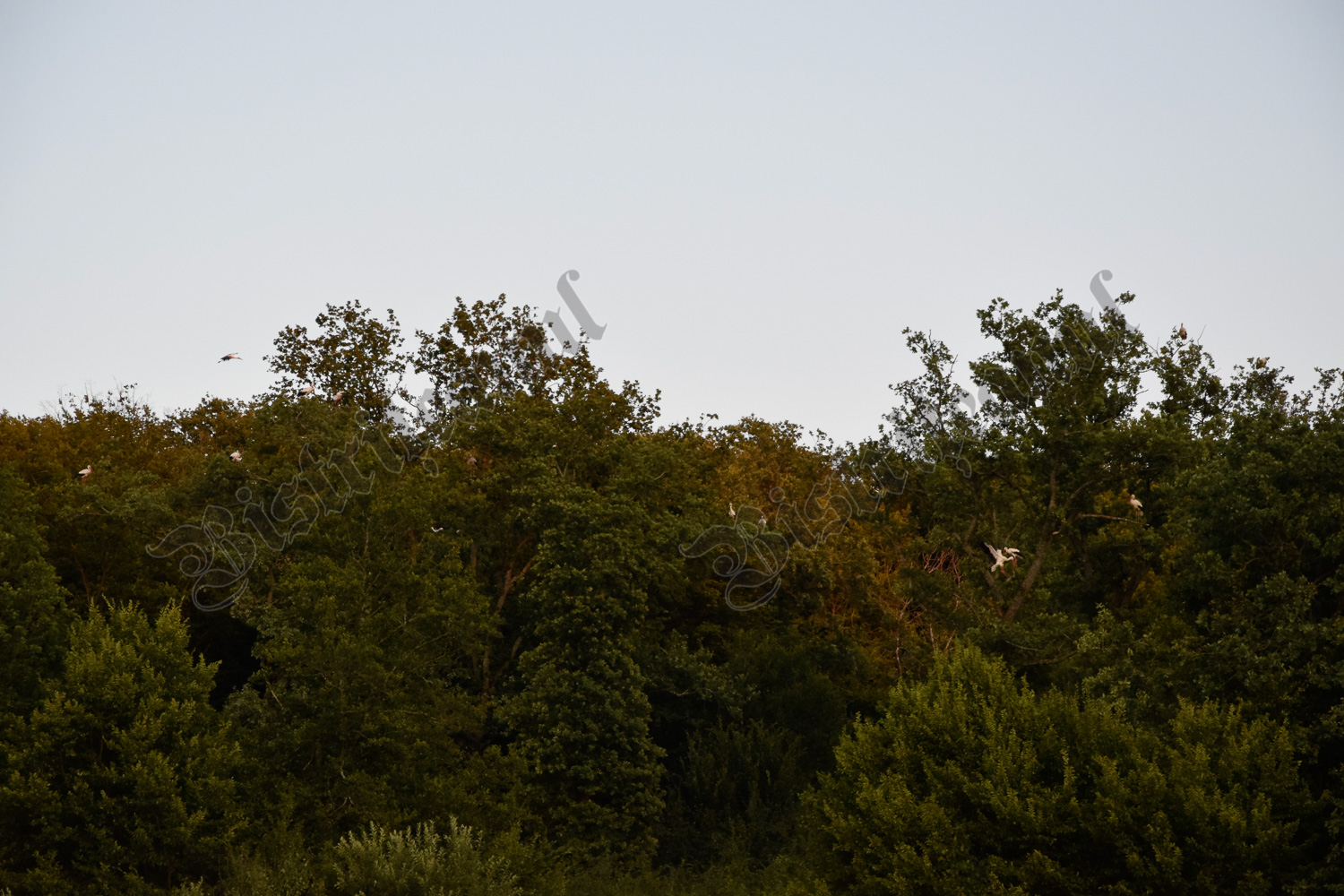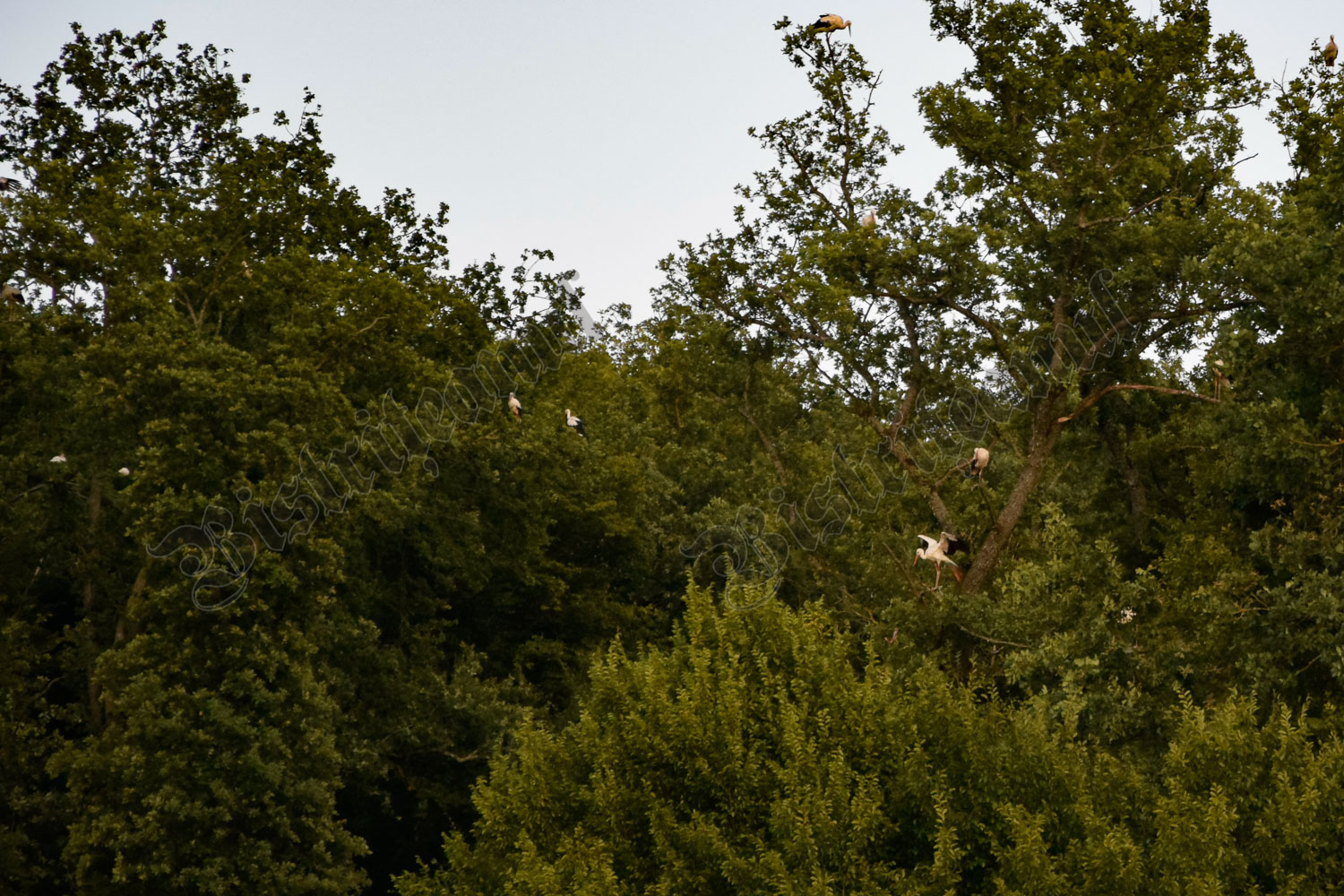După ce se înserează, încep să apară, în zbor, berze. Câte una, sau grupuri de 7 – 10 odată, toate îndreptându-se spre un copac, din care clămpăne prima barză ce ajunge în zonă.