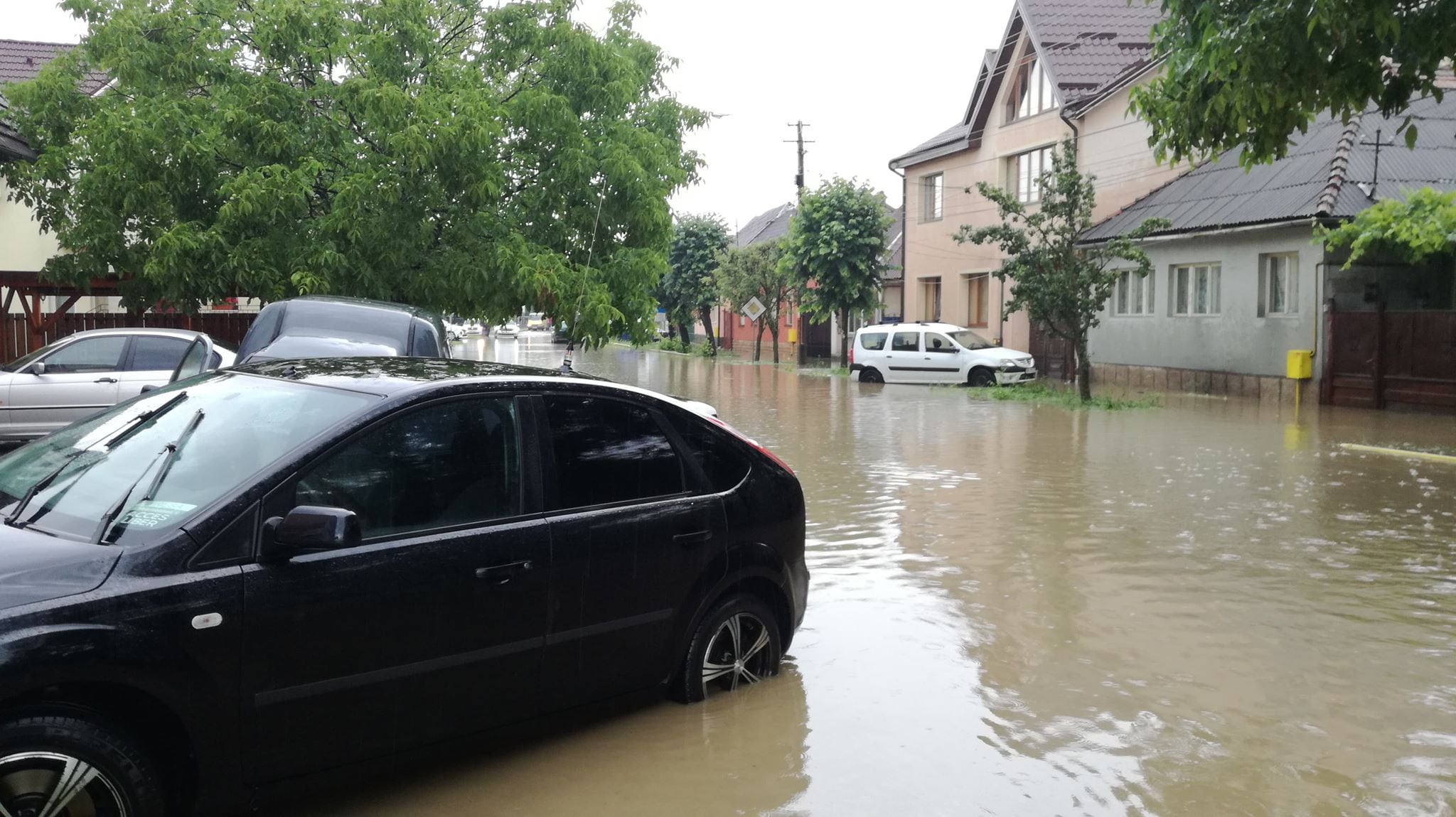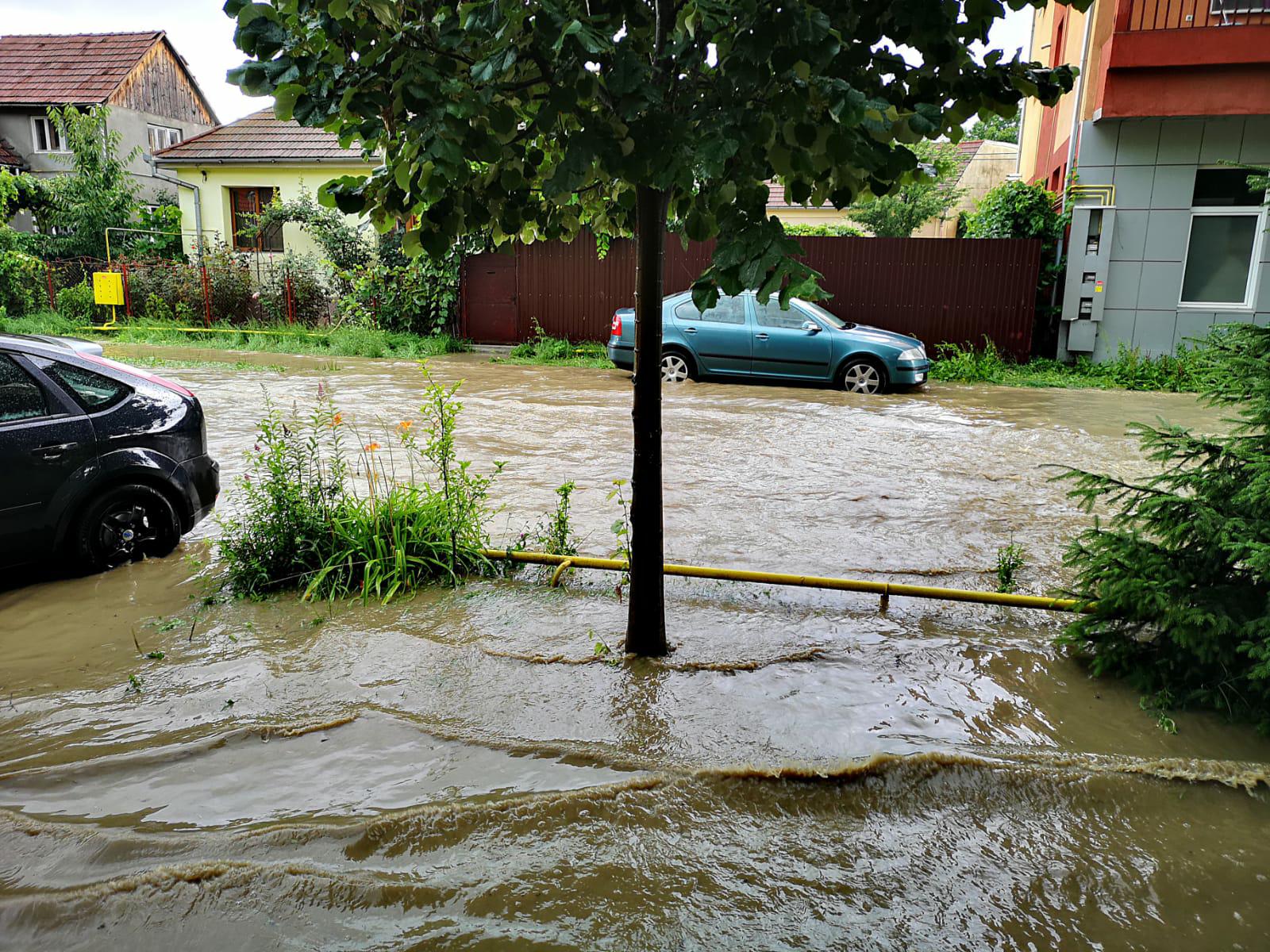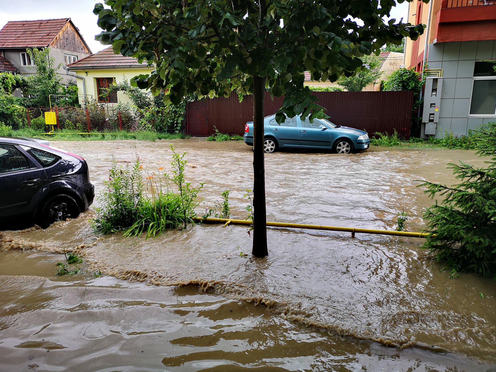 Ploile abundente și dese de azi au blocat efectiv traficul. Numeroase străzi sunt inundate. Strada Mihai Viteazu e un adevărat lac. Mai multe mașini au rămas blocate și și-au pierdut numerele de înmatriculare.