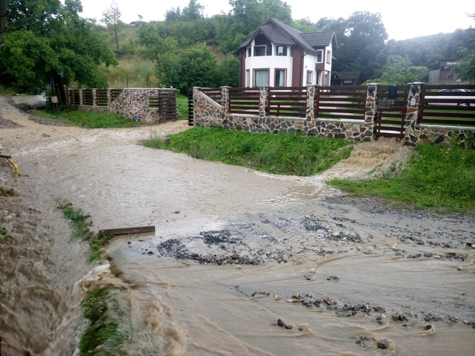 Ploaia a căzut aproape încontinuu de azi dimineață. Canalizările nu au mai făcut față, așa că străzile s-au transformat în lacuri.