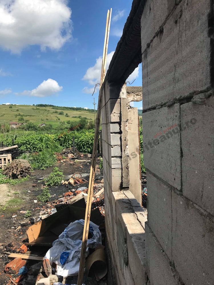 Tot ce au agonisit timp de un deceniu s-a dus pe apa sâmbetei! Abia ce își terminaseră casa de două săptămâni și un incendiu cauzat de un scurt circuit al unei prize a declanșat dezastrul! De la animale ce au murit în chinuri până la mașina ce acum e scrum, nu mai există decât parterul casei. Și acesta, ce a mai rămas din el. Făcând o vizită astăzi, nu am putut să nu observăm durerea din glasul Floricăi Simionca când povestea de tragicul incident. Mamă a cinci copii, femeia este cea care duce greul pe umeri. Soțul acesteia este invalid, iar câștigurile familiei vin din pensia acestuia de handicap, alocațiile copiilor și îndemnizația ei de însoțitor.