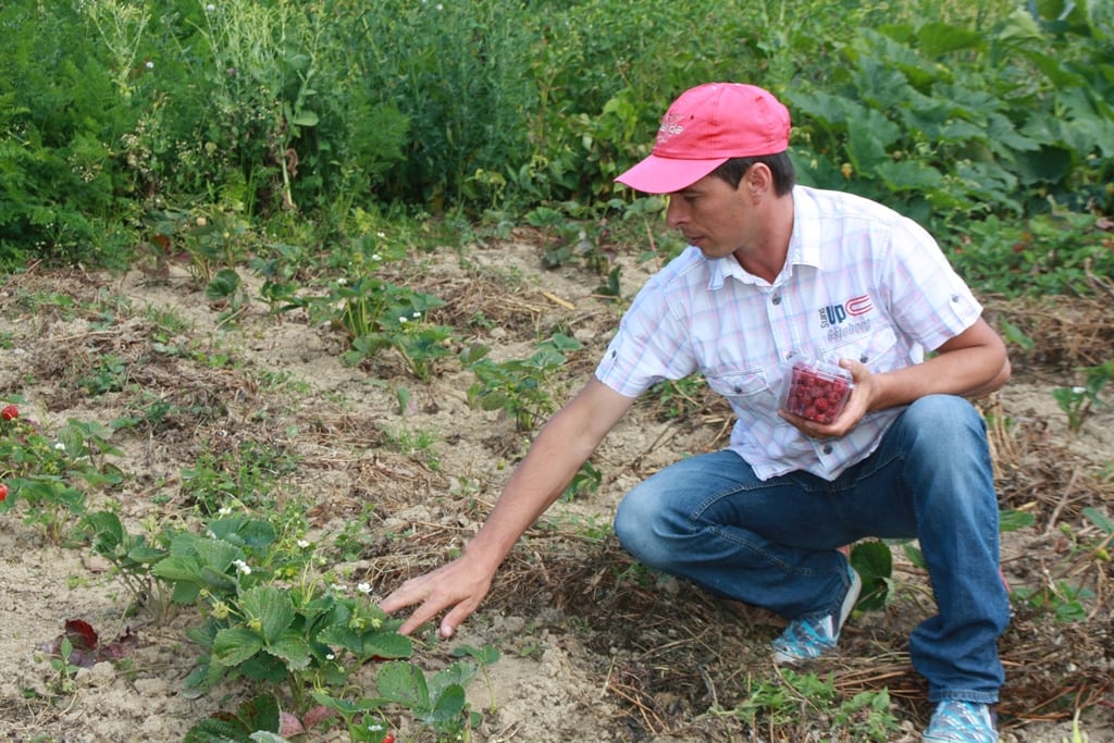 „Se termină un ciclu și începe altul și îi prinde zăpada cu flori și căpșuni. Zmeura la fel. Începem în iunie și până la sfârșitul lunii iulie culegem căpșuni clasici, care rodesc o singură dată. Iar celălalt soi îl culegem până ninge, cam până în noiembrie”, explică producătorul, care nu doar că se ocupă de tot procesul de producție, ci el vinde și în piață fructele.
