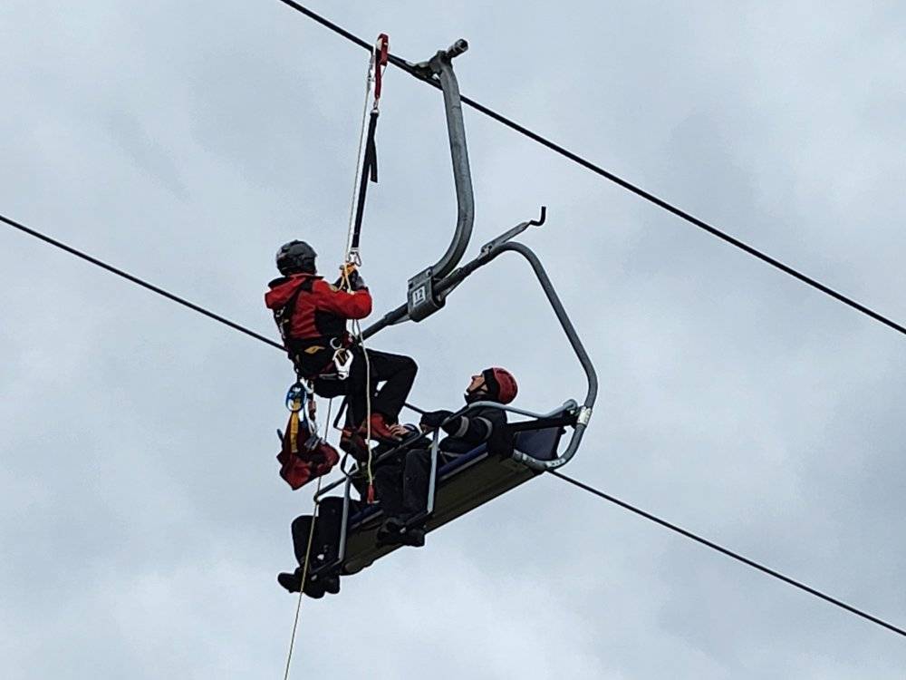 Să te blochezi la înălțime pe un telescaun de pârtie nu este o situație pe care poți să o gestionezi singur. Pentru acest lucru, un grup operativ al Serviciului Public Județean Salvamont Bistrița-Năsăud execută un exercițiu de salvare din telescaun pe Pârtia Cocoș.