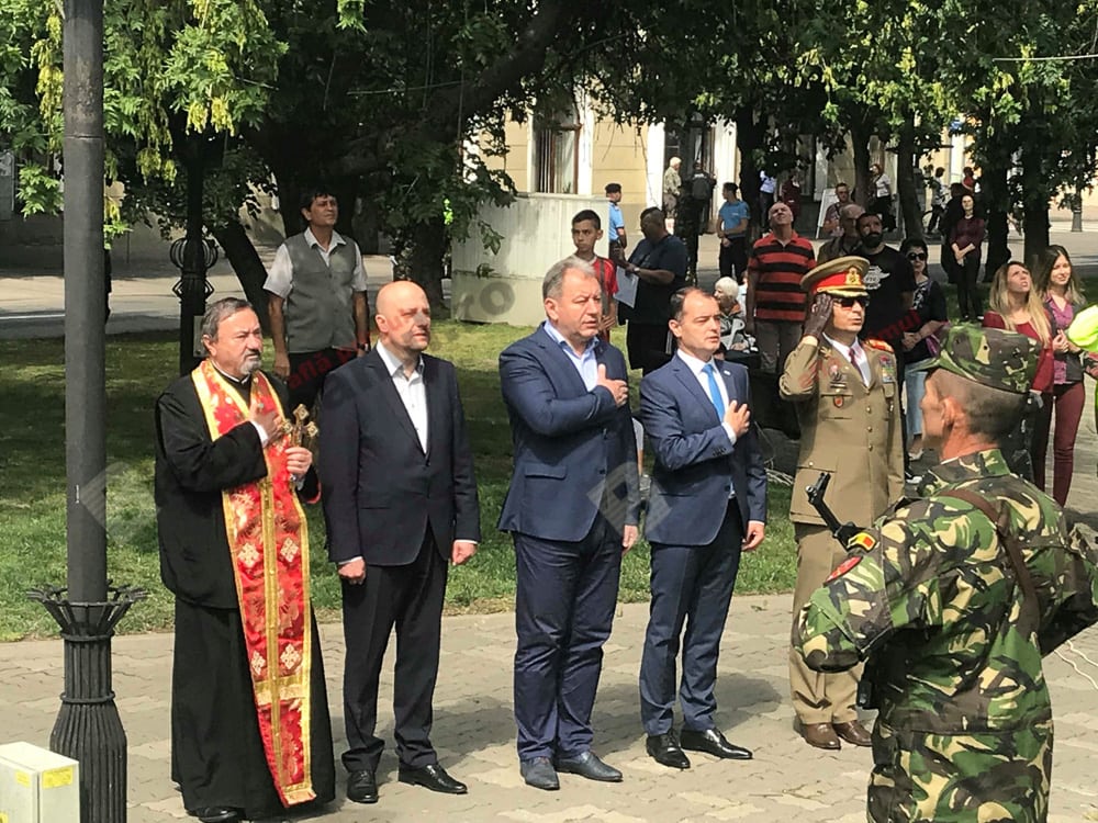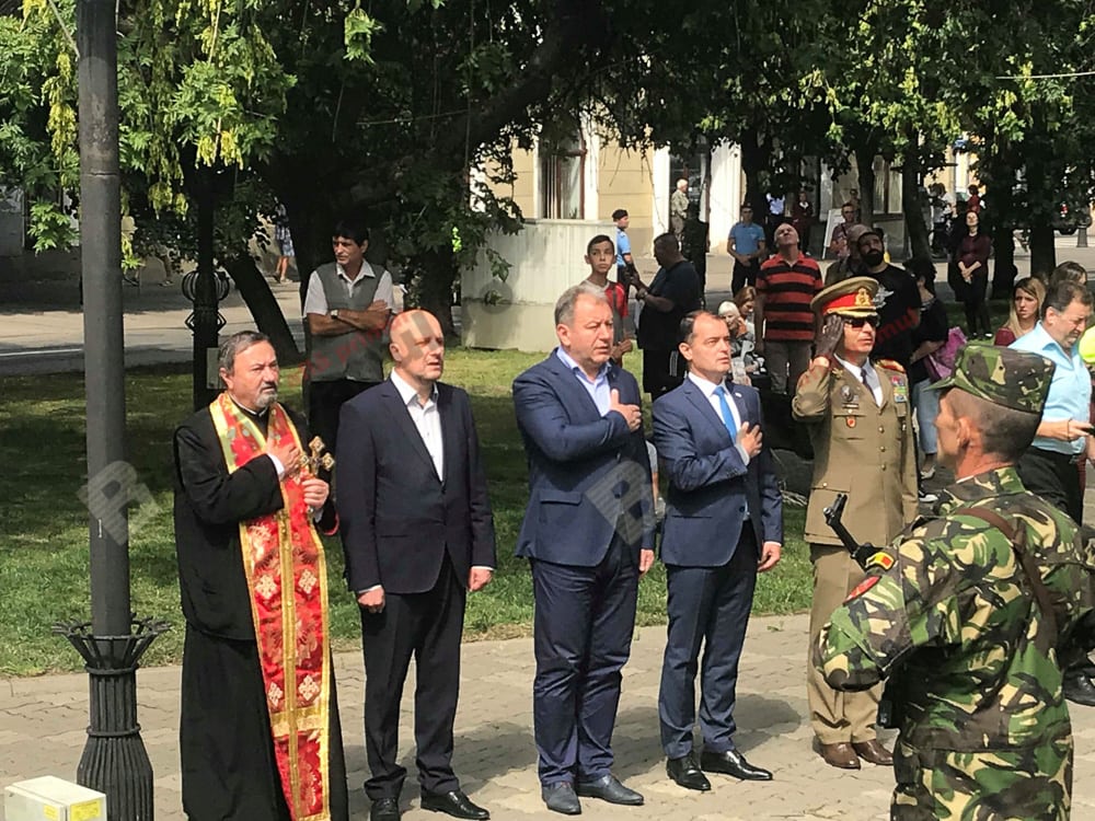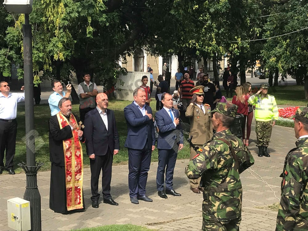 De la ora 10:00 a început Oficierea slujbei de sfințire a Drapelului Național al României la Biserica Protopopiatului Ortodox, care a durat până la ora 10:20. În cadrul acesteia au fost prezente autorități publice locale, reprezentanți SNAOPSN, reprezentanți ai asociațiilor cadrelor militare în rezervă și retragere și veteranilor de război.