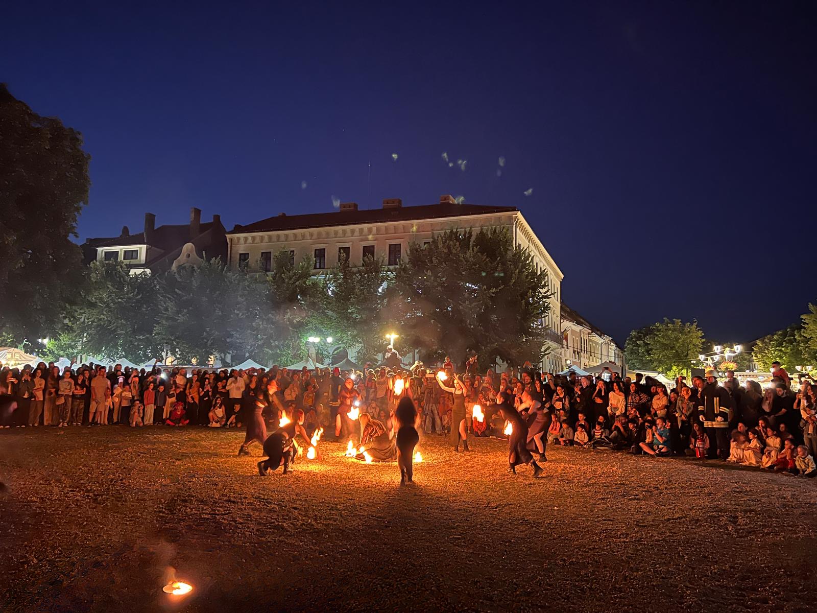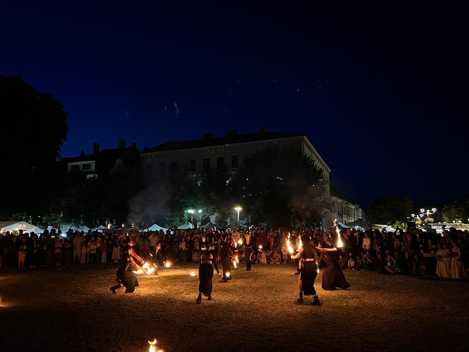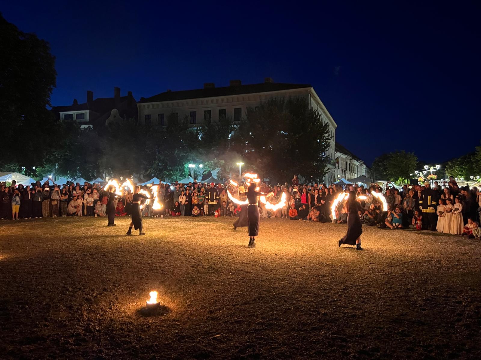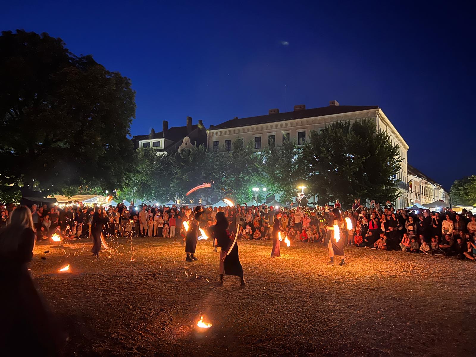 Aseară, domnițele, cavalerii, bufonii sau călugării au luat la pas, cu torțe în mână, Pietonalul Liviu Rebreanu, anunțând unul dintre cele mai așteptate momente ale zilei: jongleriile cu foc ale celor de la SiriuS.