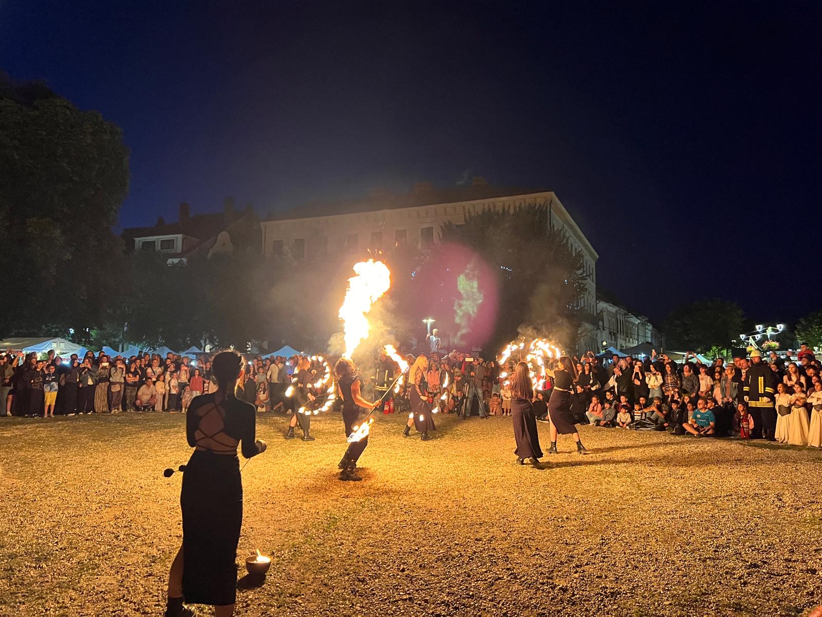 A fost momentul care a încheiat seara. Trupa SiriuS, nelipsită de la evenimentele cu tentă medievală din Transilvania, a îmblânzit de-a dreptul focul. Printre cele mai spectaculoase momente au fost „numărul” de scuipat foc sau dansul cu rochia de foc.