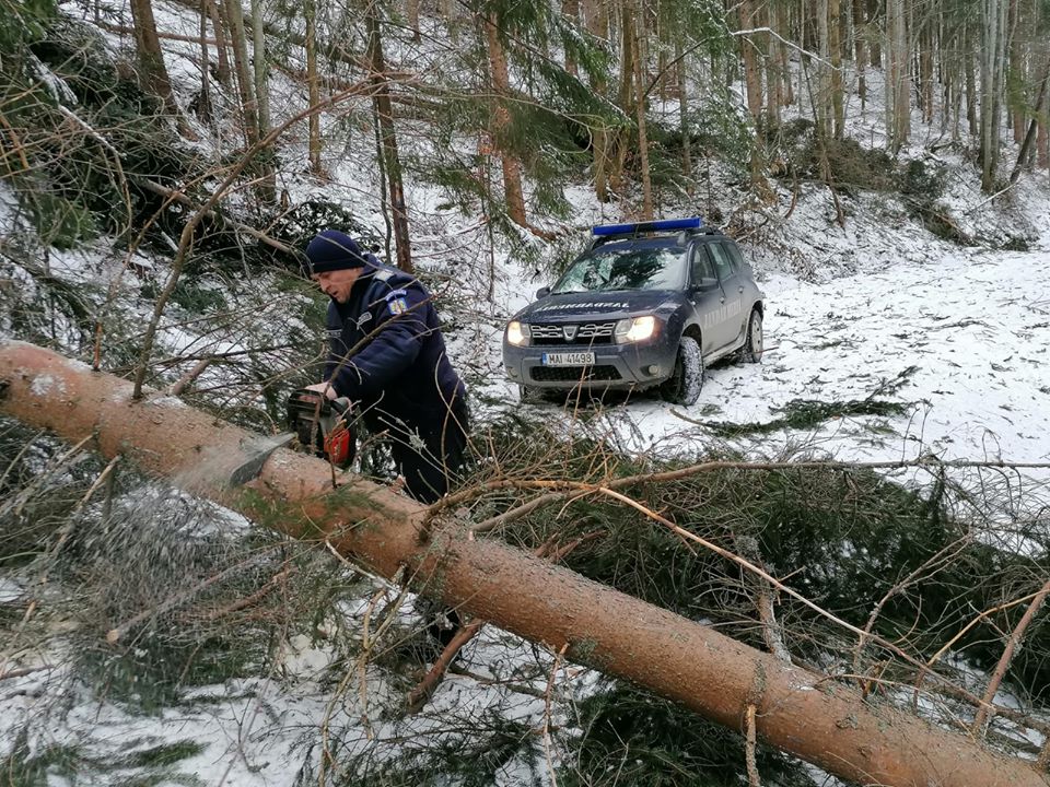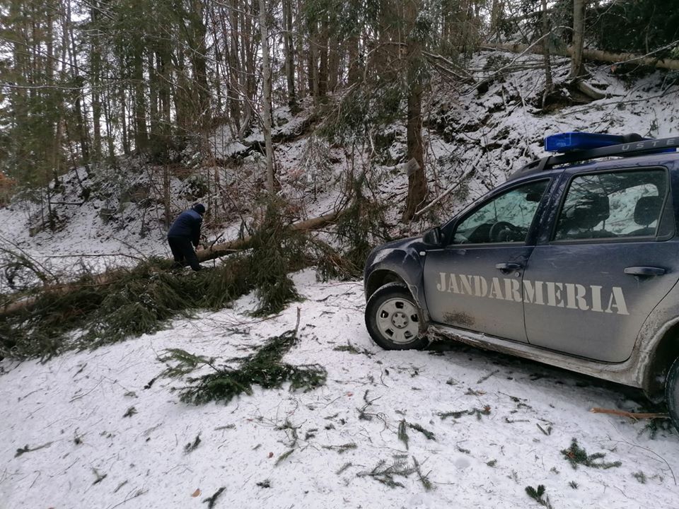 Jandarmii au intervenit pentru a înlătura mai mulți copaci ce blochează drumurile de acces la cabane, pentru turiști. Din cauza zăpezii sau a copacilor căzuți pe liniile de cale ferată, mai multe trenuri au fost anulate. AFLĂ detalii: