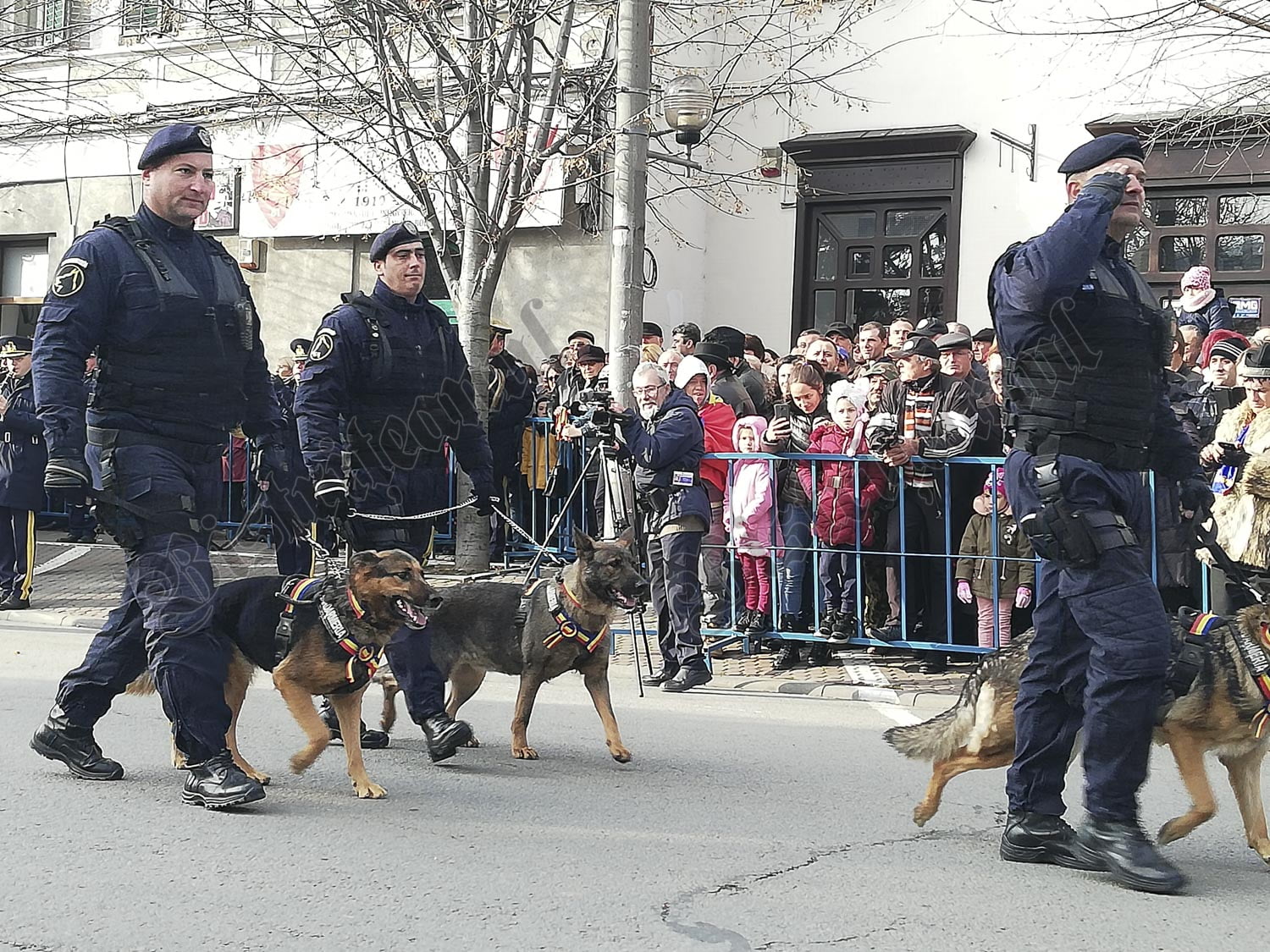 Apoi, cei prezenți au urmărit cu mare interes parada. Copiii au fost cei mai fascinați de militari și jandarmi, iar din paradă nu putea lipsi Bobiță, câinele militarilor. Prin fața ochilor celor prezenți au trecut și cei de la ISU, SAJ, SVSU, Cercetașii Bistrițeni, SRI, Penitenciar.