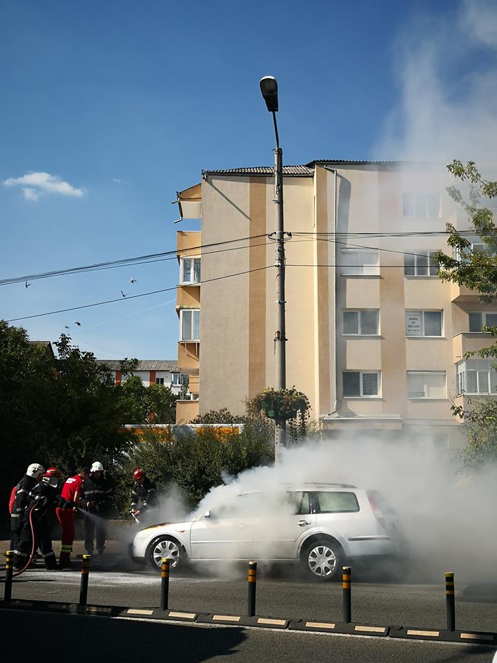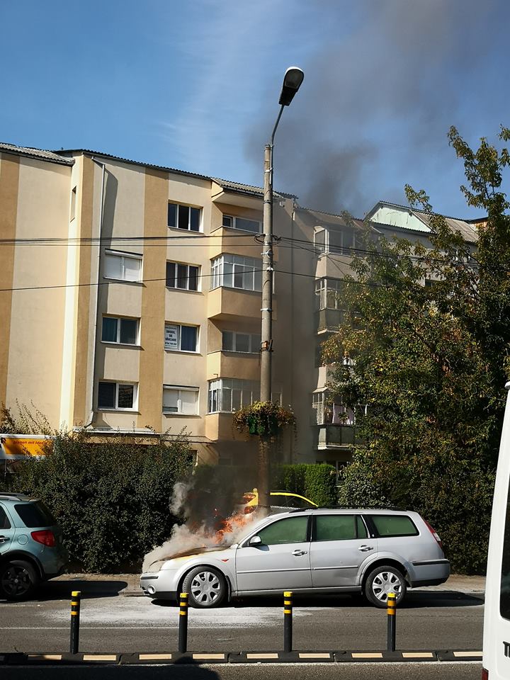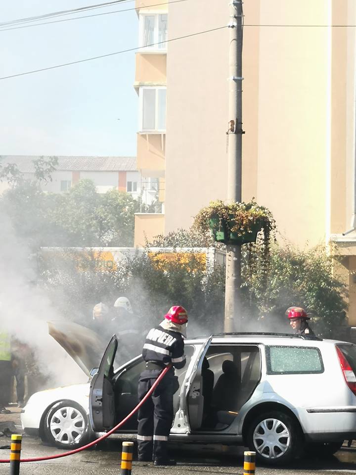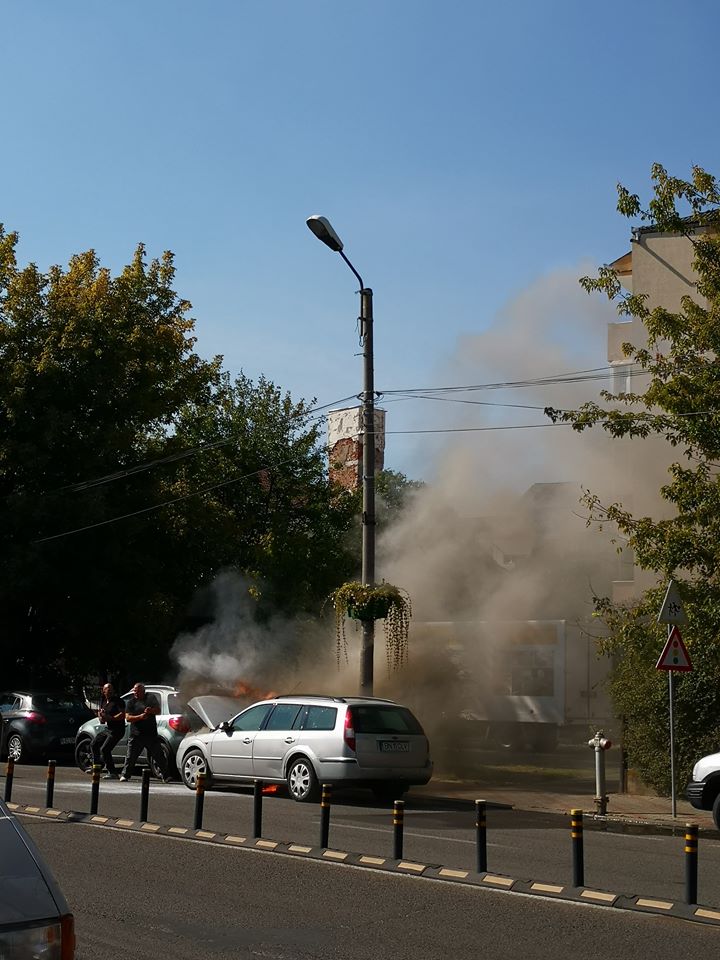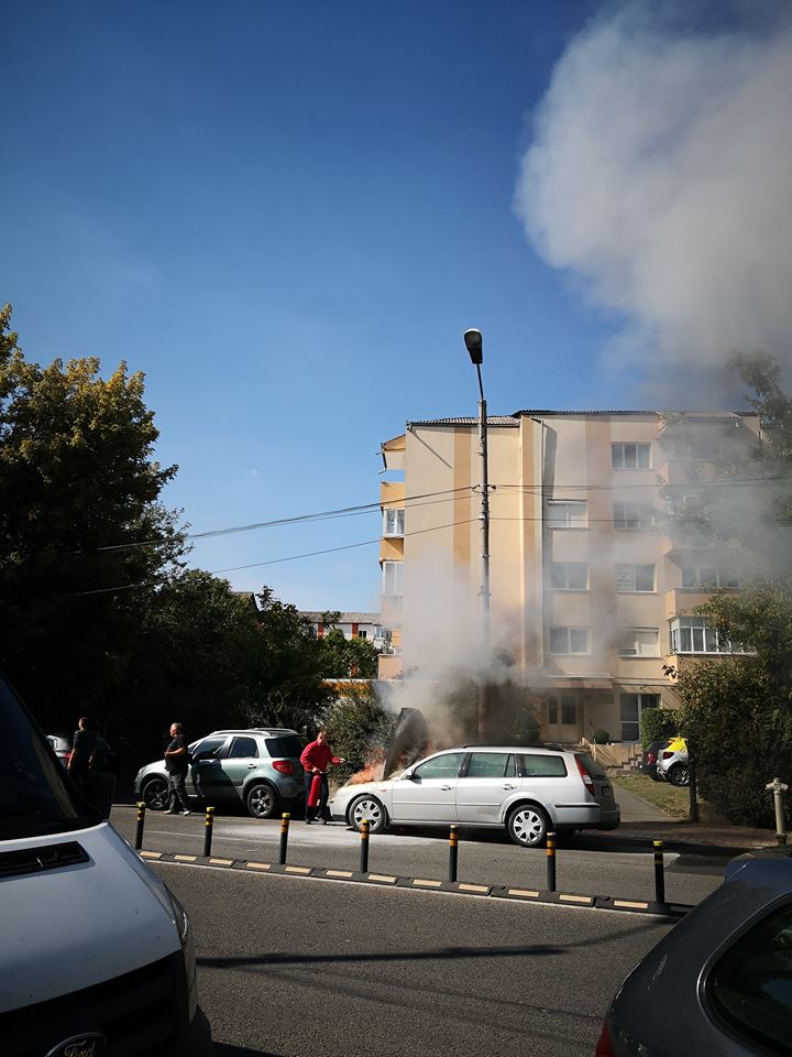 Un apel la 112 solicita intervenția echipajelor pompierilor. Un autoturism a fost cuprins de flăcări, în mers, pe strada 1 Decembrie, la puțină distanță de sensul giratoriu de la Han.