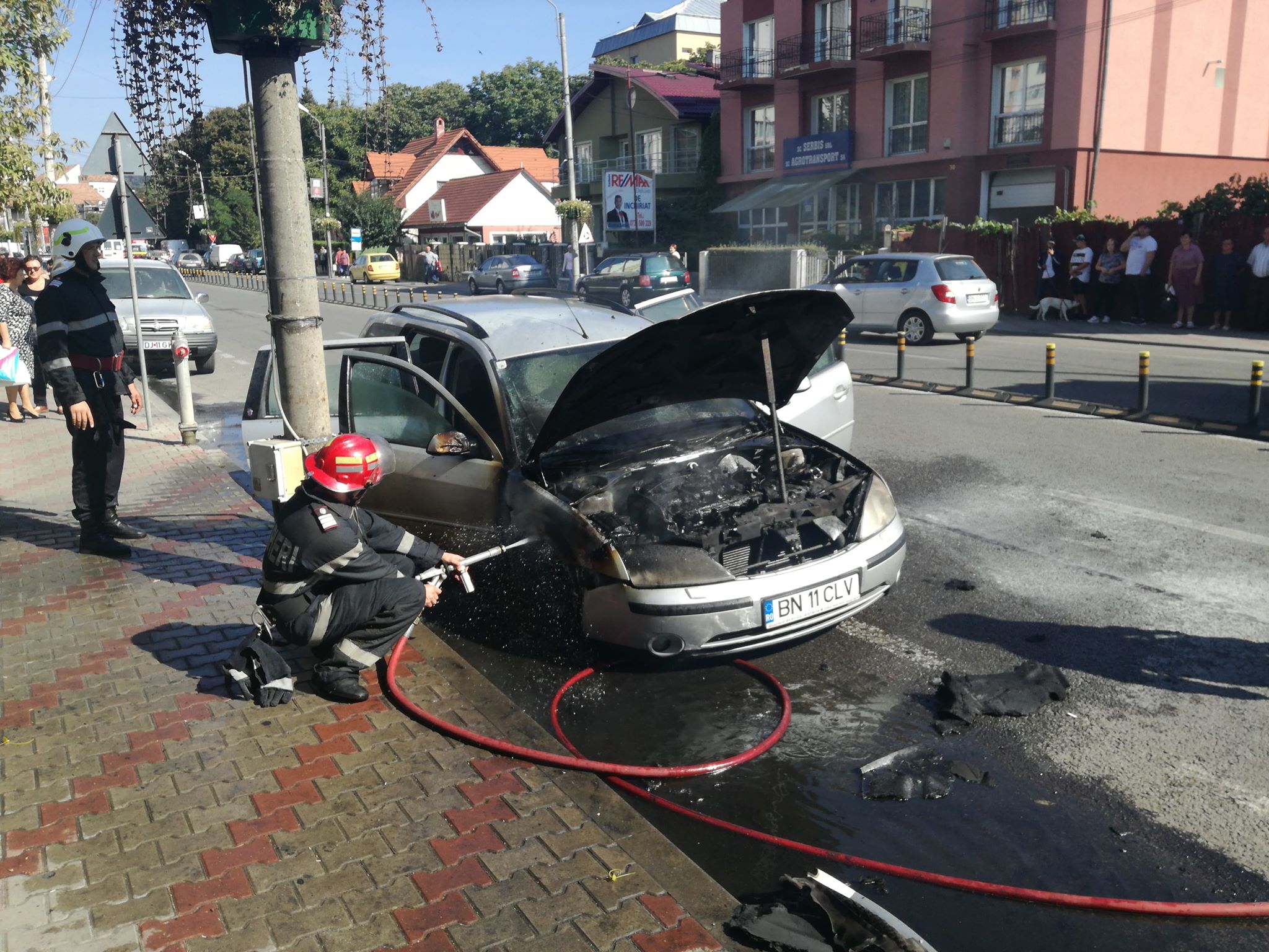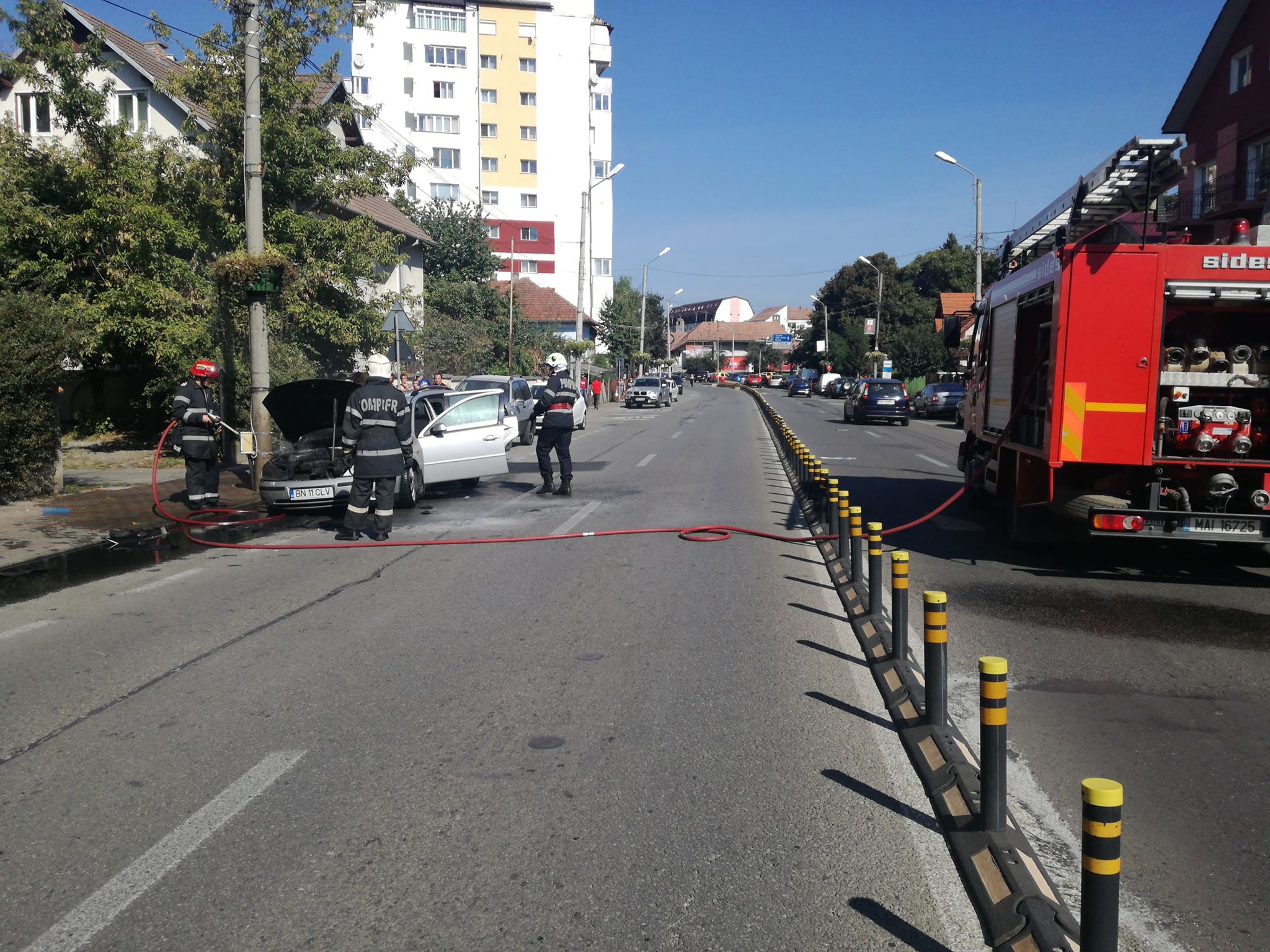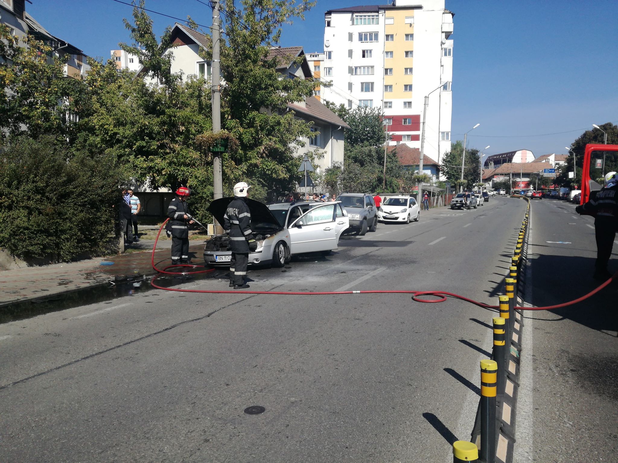 Un apel la 112 solicita intervenția echipajelor pompierilor. Un autoturism a fost cuprins de flăcări, în mers, pe strada 1 Decembrie, la puțină distanță de sensul giratoriu de la Han.