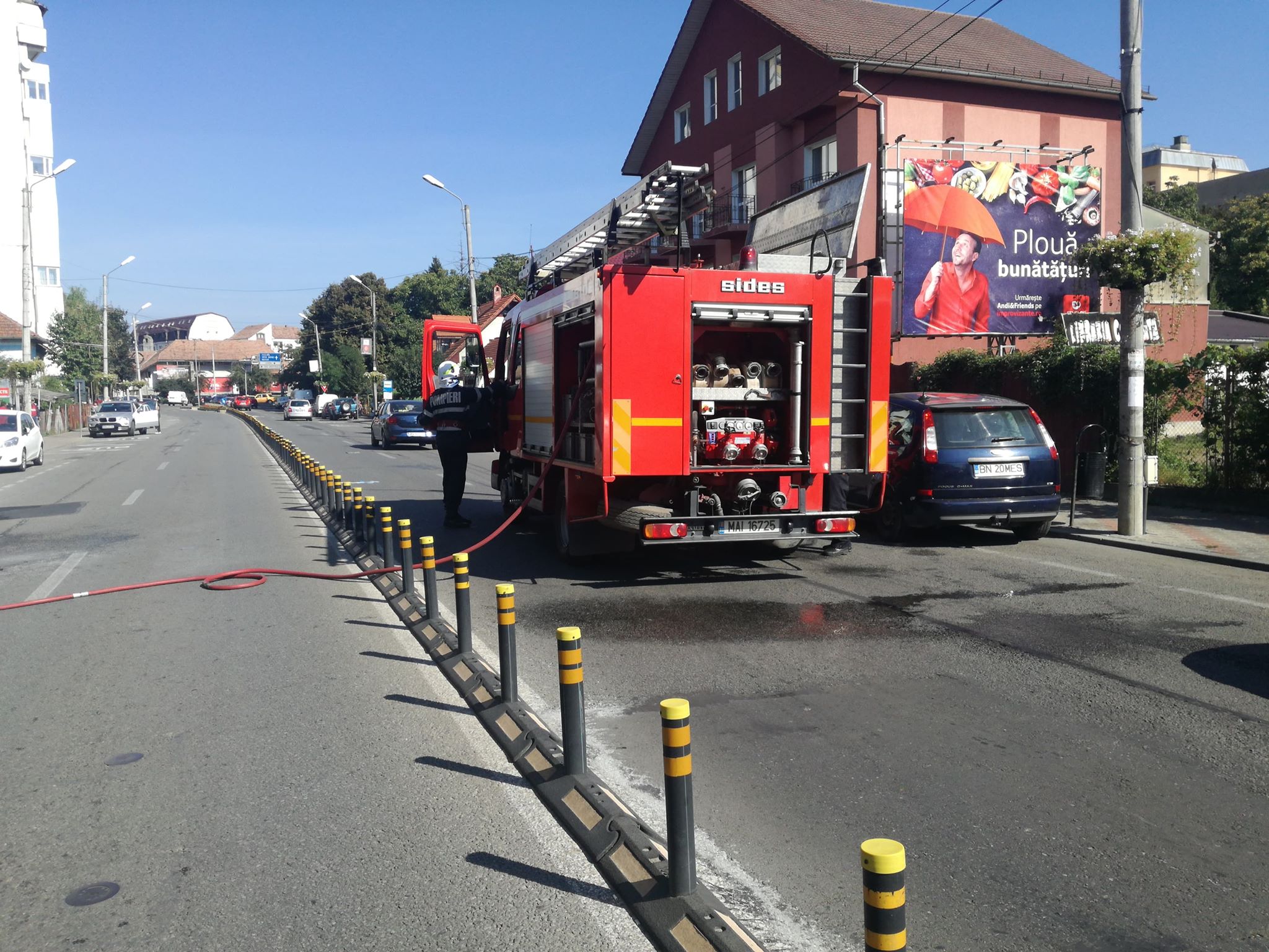 Autospeciala cu apă și spumă a pompierilor a oprit pe sensul opus de mers, așa că preț de câteva zeci de minute, circulația a fost blocată pe ambele sensuri.