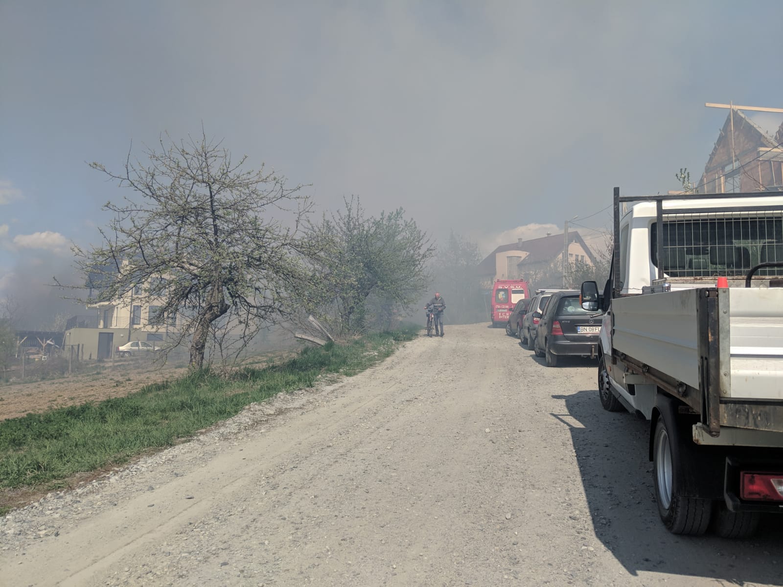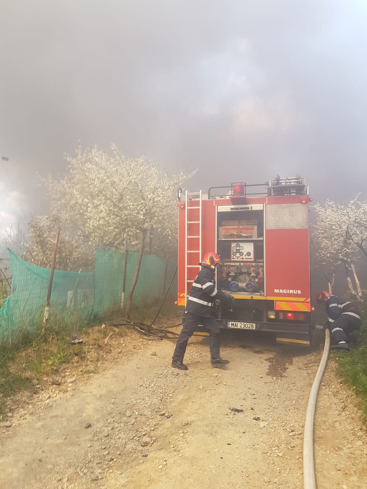 „Incendiul se manifesta generalizat, cu flăcări înalte de câțiva metri și a cuprins o casă locuibilă (regim de înălțime parter plus mansardă, circa 80 – 100 mp) și anexe (grajd, hală, depozit, magazie – pline de materiale combustibile: cauciucuri, lemn, utilaje etc) pe o suprafață de circa 250 mp. Incendiul a fost întreținut de acțiunea vântului, care sufla puternic și își schimba periodic direcția). 19 pompieri militari (1 ofițer și 18 subofiteri) și voluntarii de la SVSU Bistrița au acționat unitar pentru localizarea și lichidarea focarelor și în momentul de față lucrează pentru îndepărtarea elementelor de construcție care prezintă riscul prăbușirii”, a declarat Marius Rus, purtătorul de cuvânt al ISU Bistrița.