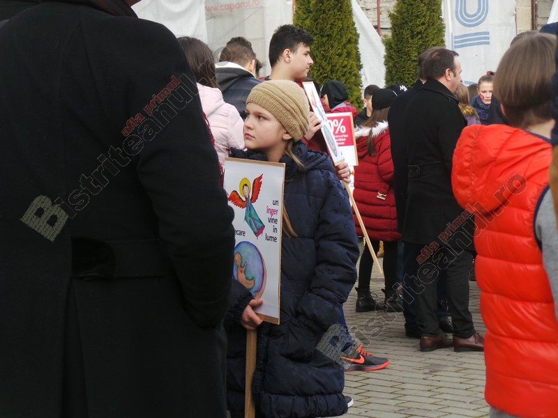 Bistrițenii care au participat la marșul pentru viață au traversat Pietonalul Liviu Rebreanu, strada Gheorghe Șincai, Bulevardul Independenței, poposind la Biserica „Sfânta Ana” unde s-a desfășurat o slujbă de pomenire pentru toți copiii nenăscuți.