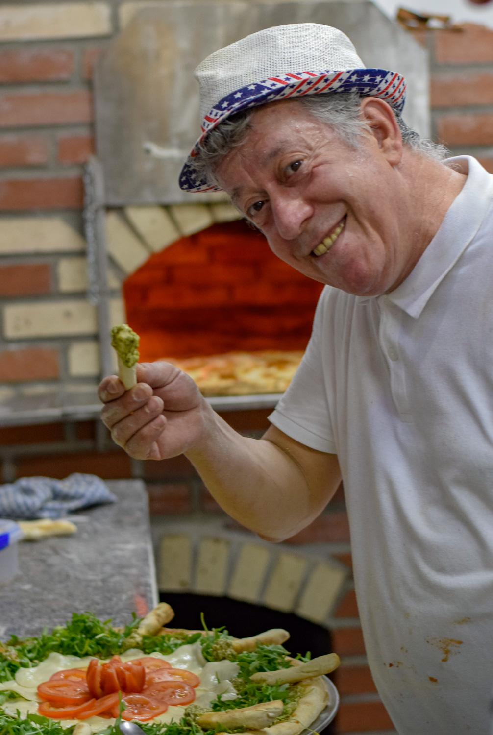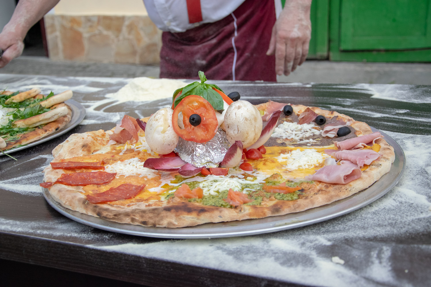 Înainte de a trece la prepararea renumitei pizza „Fantezia bucătarului” care nu va avea niciodată aceeași rețetă chiar dacă e comandată de două persoane de la aceeași masă, bucătarului italian îi place să își binedispună clienții și le oferă adevărate spectacole în care jonglează cu aluat, spre deliciul trecătorilor care se opresc pentru câteva minute să îl privească pe italianul care învârte aluatul în aer și creează costume din blatul de pizza.