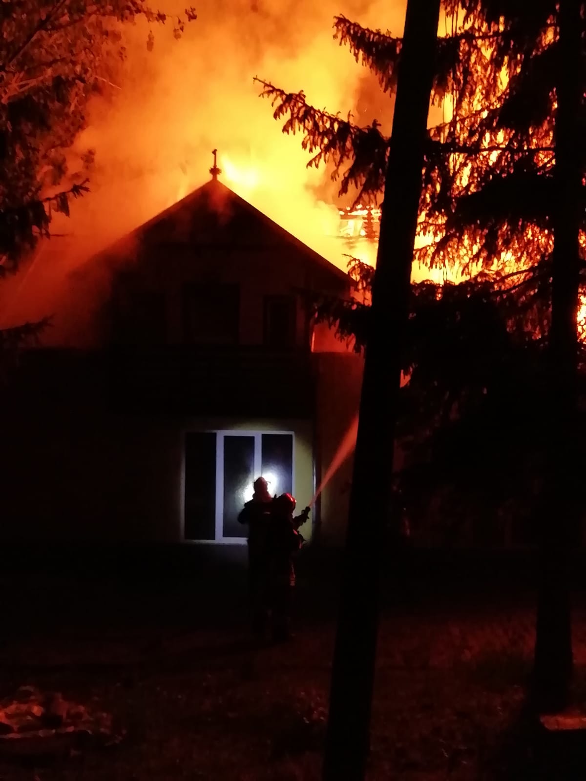 „Incendiul se manifesta pe o suprafață de aproximativ 150 de metri pătrați (acoperiș și mansardă). Din primele date, imobilul nu era dat în folosință, nu erau persoane în interior”, a declarat putătorul de cuvânt al ISU Bistrița.