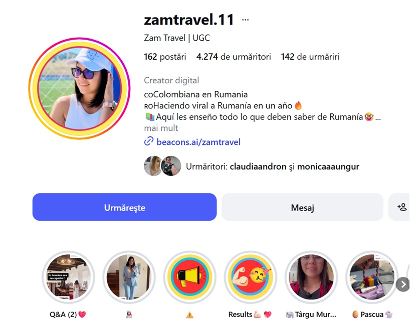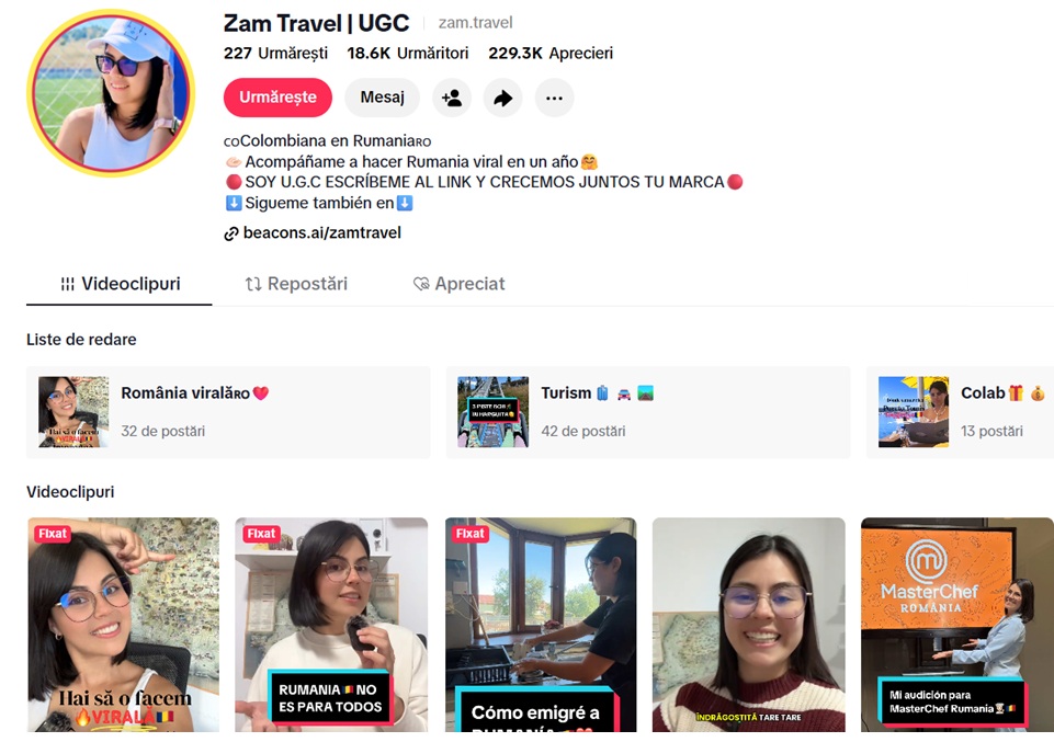 Constanța, Sighișoara, Cluj, Brașov, Cheile Turzii, Alba Iulia, Deva, Hunedoara, Maramureș, Satu Mare, Oradea… Sunt doar câteva dintre orașele pe care Zayda Montero le-a vizitat deja, alături de familia sa. Iar emoțiile pe care le-au trăit descoperind aceste locuri fac deliciul internauților, care îi răsplătesc cu mii de like-uri și comentarii.