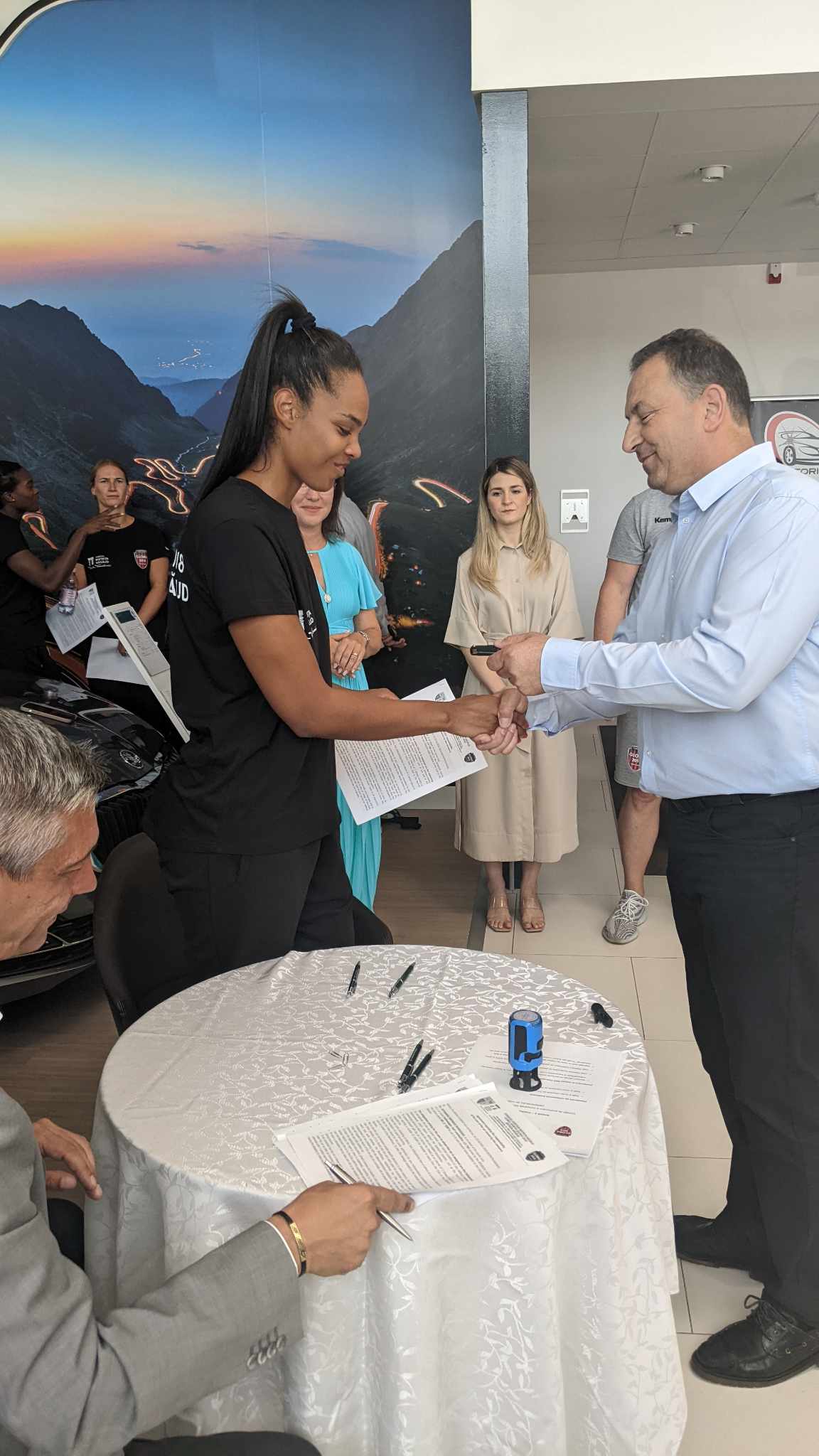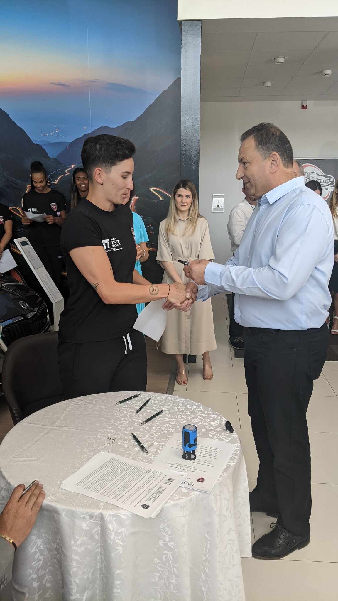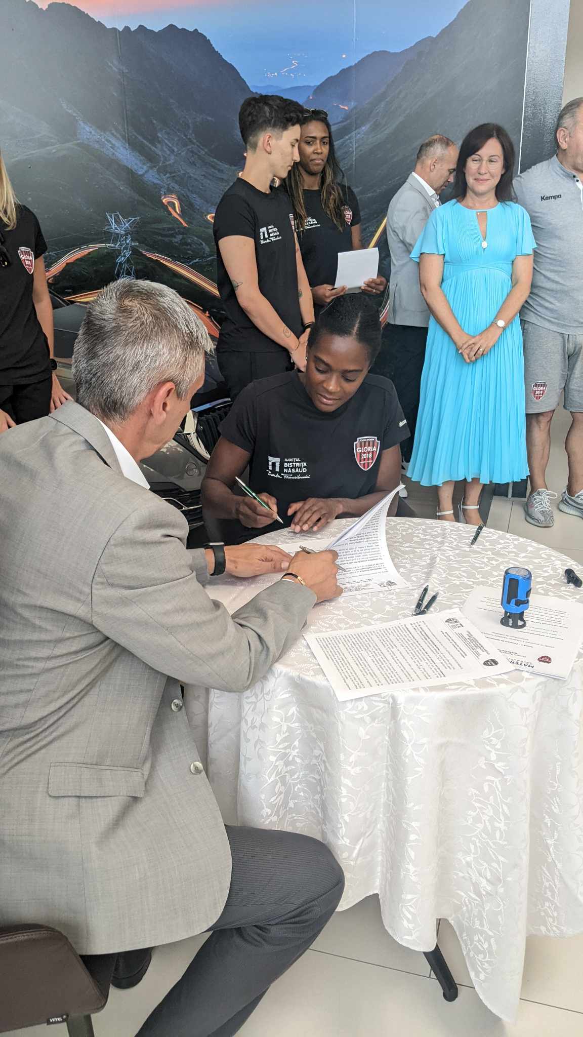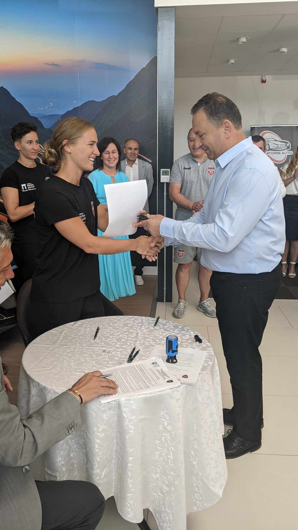 Mai multe jucătoare de handbal din echipa Gloria 2018, dar și antrenorii au primit astăzi mașini noi de la Materom Automotive, în baza unui contract de sponsorizare. Mașinile sunt diferite mărci, sponsorul alegându-le în funcție de posesor. Toate fac parte din portofoliul de autoturisme distribuite de Materom Automotive.