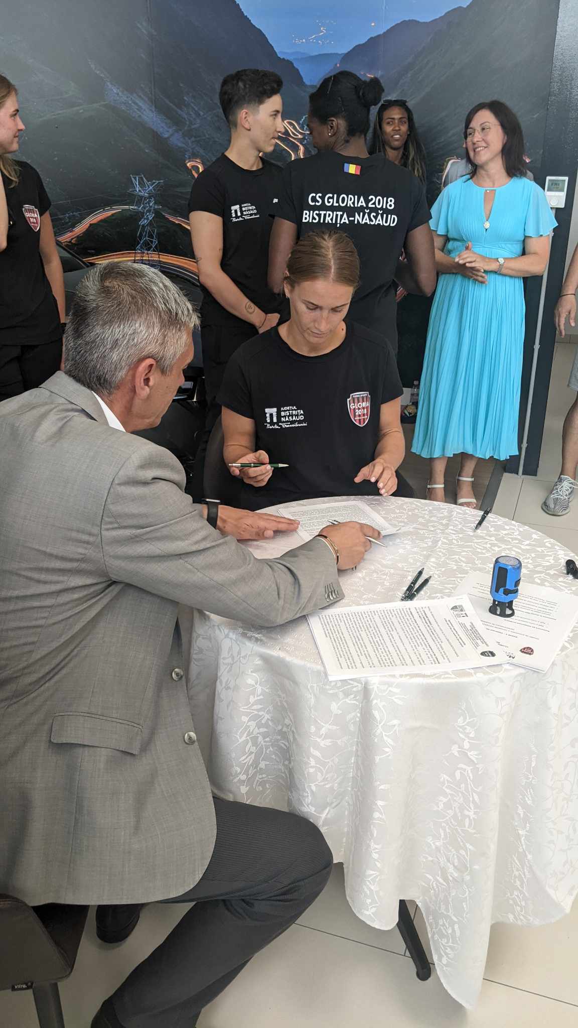 „Materom nu face business numai pentru bani, pentru profit, deși este foarte important să avem rezultate. Unul dintre obiectivele noastre este să aducem schimbare în România prin profesionalism și prin rezultate. Pentru noi contează mai mult valorile. (…) Ne bucurăm pentru progresul județului Bistrița-Năsăud și vrem să fim alături de clubul Gloria Bistrița prin acest parteneriat de mobilitate ținând cont de faptul că sportul înseamnă disciplină, înseamnă ambiție, sănătate. Vrem să încurajăm tânăra generație și sperăm ca clubul prin jucătoarele sale să fie un exemplu pentru tânăra generație”, a declarat Rodica Baciu, director general Materom.