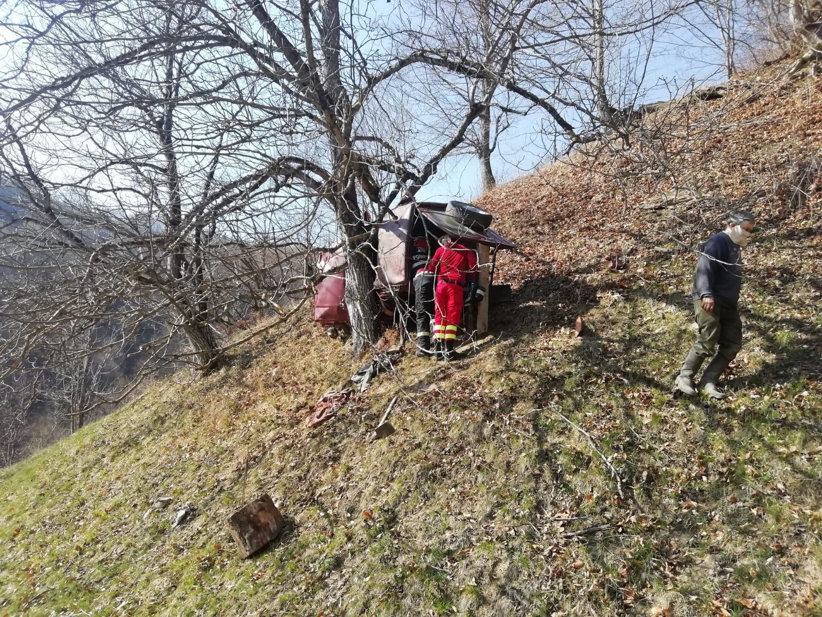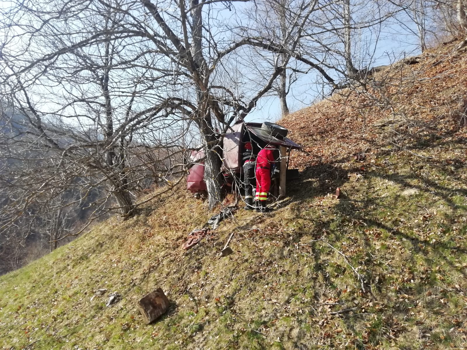 Din informațiile de la fața locului se pare că autovehiculul a părăsit un drum forestier și a ajuns într-o râpă, la aproximativ 12 – 14 m, între copaci. În urma impactului, șoferul a rămas blocat în autoturism, în stare de inconștiență.