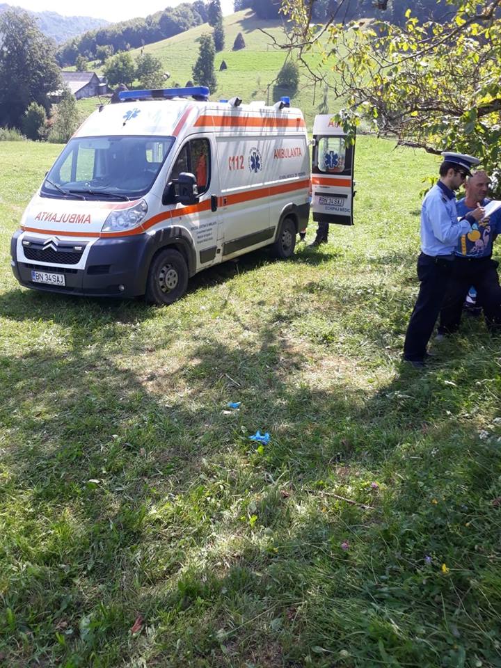 FOTO – Hălmăsău: Un bărbat a murit după ce s-a răsturnat cu tractorul. Soția sa a fost și ea rănită grav