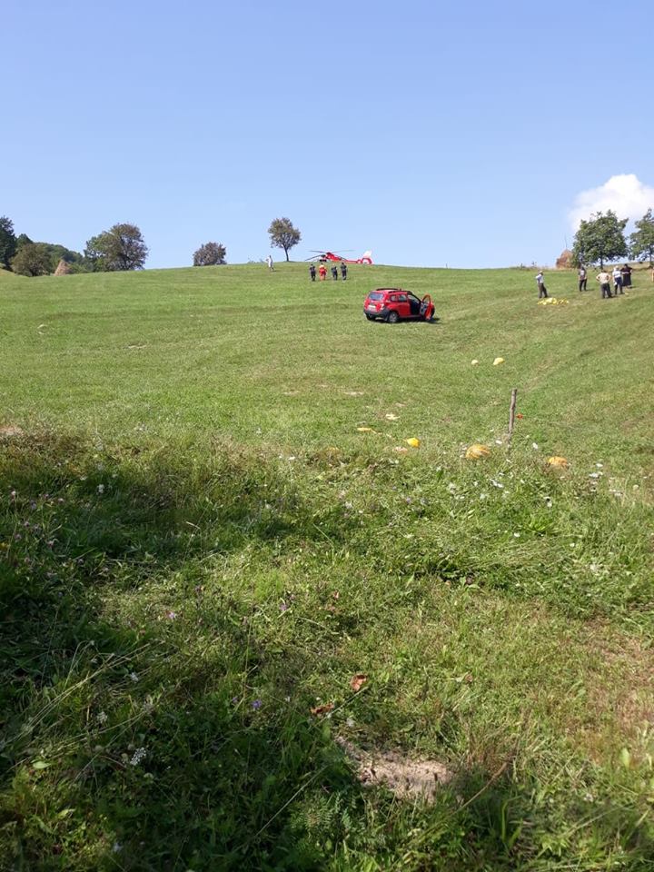 Accidentul a avut loc pe un câmp, accesul fiind greu accesibil. A fost solicitat elicopterul SMURD pentru a o prelua pe femeia din Hălmăsău și a o transporta la o clinică de specialitate din Târgu Mureș.