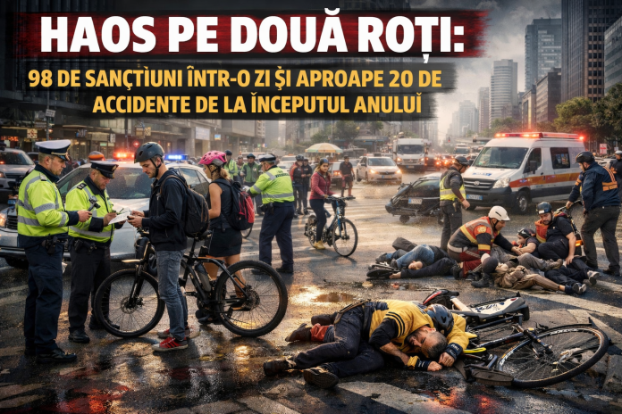 Bicicliștii, trotinetiștii și pietonii sunt în top trei cauze ale accidentelor rutiere în județ. Într-o acțiune a poliției, bicicliștii și trotinetiștii au primit 98 de sancțiuni, într-o zi. De la începutul anului, această categorie de participanți la trafic au fost implicați în 18 accidente.