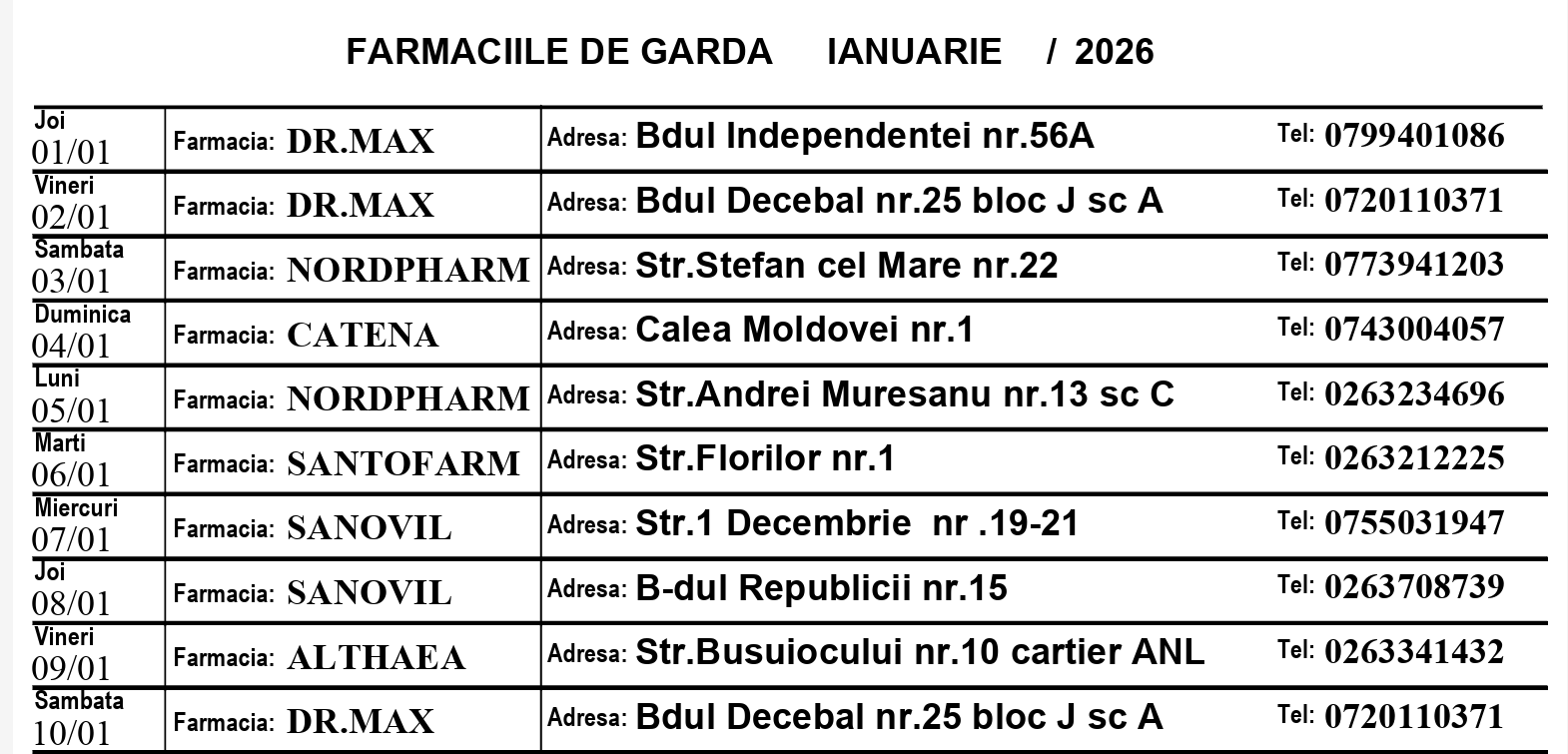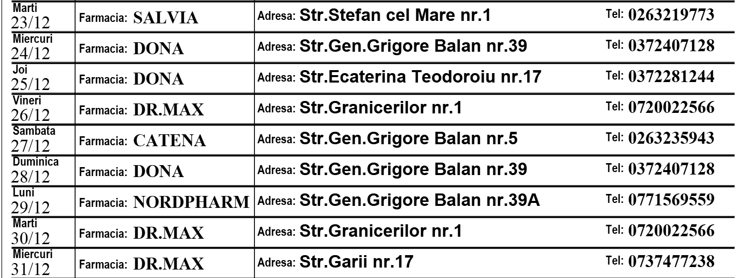 În perioada următoare, pe lângă bucuria de a fi împreună, apar și diferite afecțiuni. Astfel, dacă aveți nevoie de consult medical sau tratamente medicamentoase, Bistrițeanul.ro vă pune la dispoziție lista cu programul acestora.