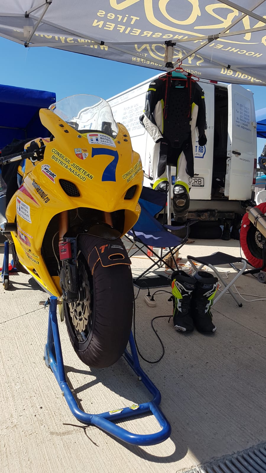”Se merge în sens invers acelor de ceasornic, la această competiție. O etapă normal, o etapă invers. Am venit de joi și mi-a prins bine. M-am antrenat, vineri a plouat, așa că mai mult am stat. Sâmbătă au fost calificările. Mă simt ok, mi-am mai reglat puțin dansul cu motocicleta și sper la un loc bun și o cursă frumoasă” a transmis din șaua motocicletei galbene, Sorin Pop.