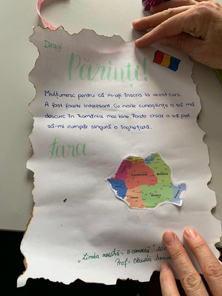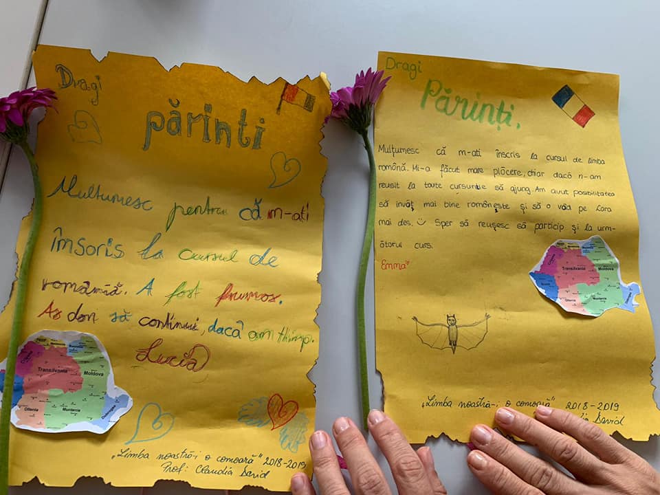 „În orice caz, copiii și eu am avut o mulțumire imensă în momentul în care, la sfârșitul cursului, au reușit să scrie prima lor „scrisoare” în limba română. O scrisoare de mulțumire către părinți pentru faptul că i-au înscris la acest curs. Și cu bilanțul, ce le-a plăcut lor cel mai mult”, a mai povestit Claudia David.