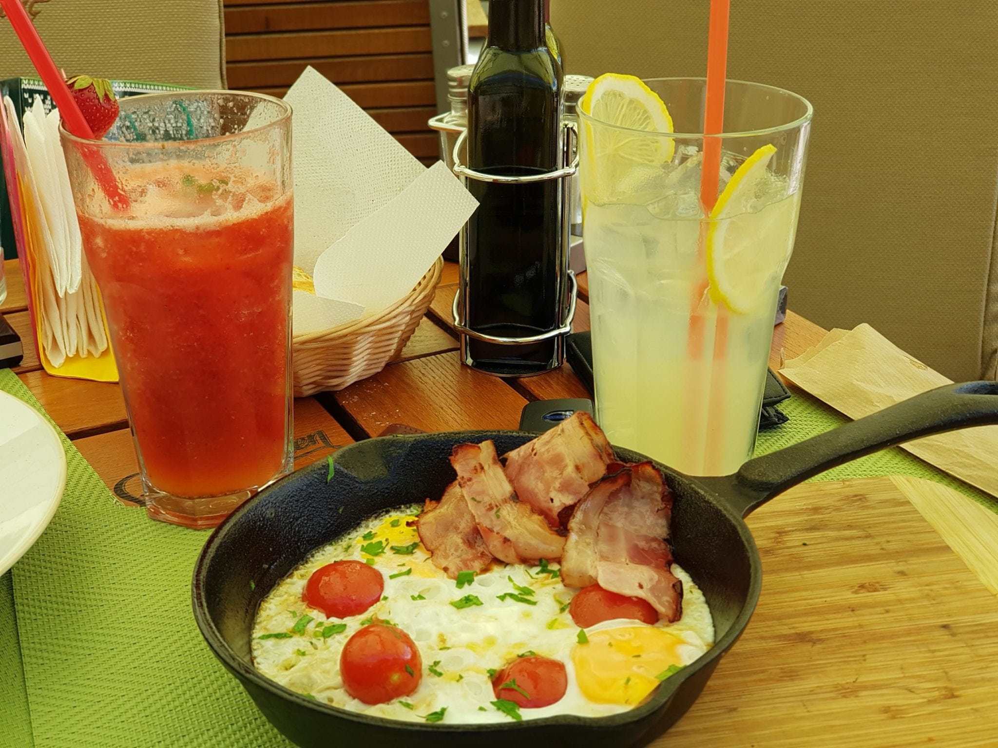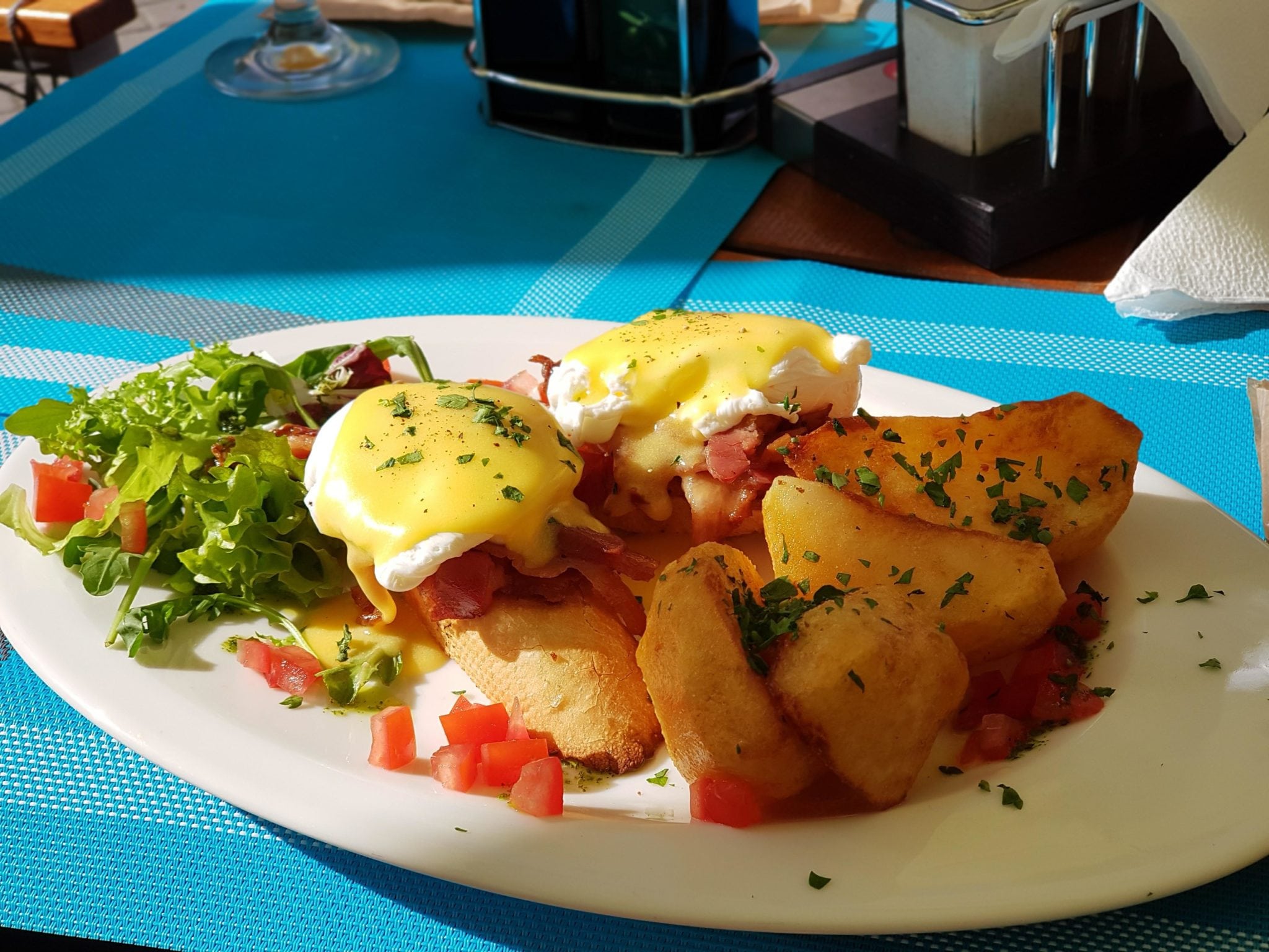 Dacă ajungeți dimineața prin zonă și vreți un mic dejun aparte, puteți să comandați ouă la tigaie sau Ouă Benedict (ouă poșate așezate pe două felii de pâine toast, servite alături de cel mai bun jambon Serrano, dus înspre crocant, cu cartofi aromatizați, toate servite alături de faimosul sos olandez. Veți fi impresionați nu numai de servire, ci și de generozitatea unui astfel de mic dejun.