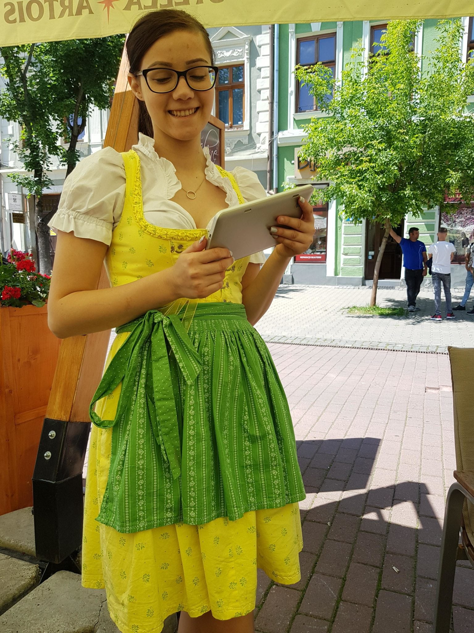 Terasa de pe Pietonal este însă marea provocare a familiei Cismaș din fiecare an. Adoră să-și surprindă clienții cu preparate noi, cu un plating aparte, cu o servire aparte – mese cu flori proaspete, fete care servesc în ținute bavareze cu zâmbetul pe buze.