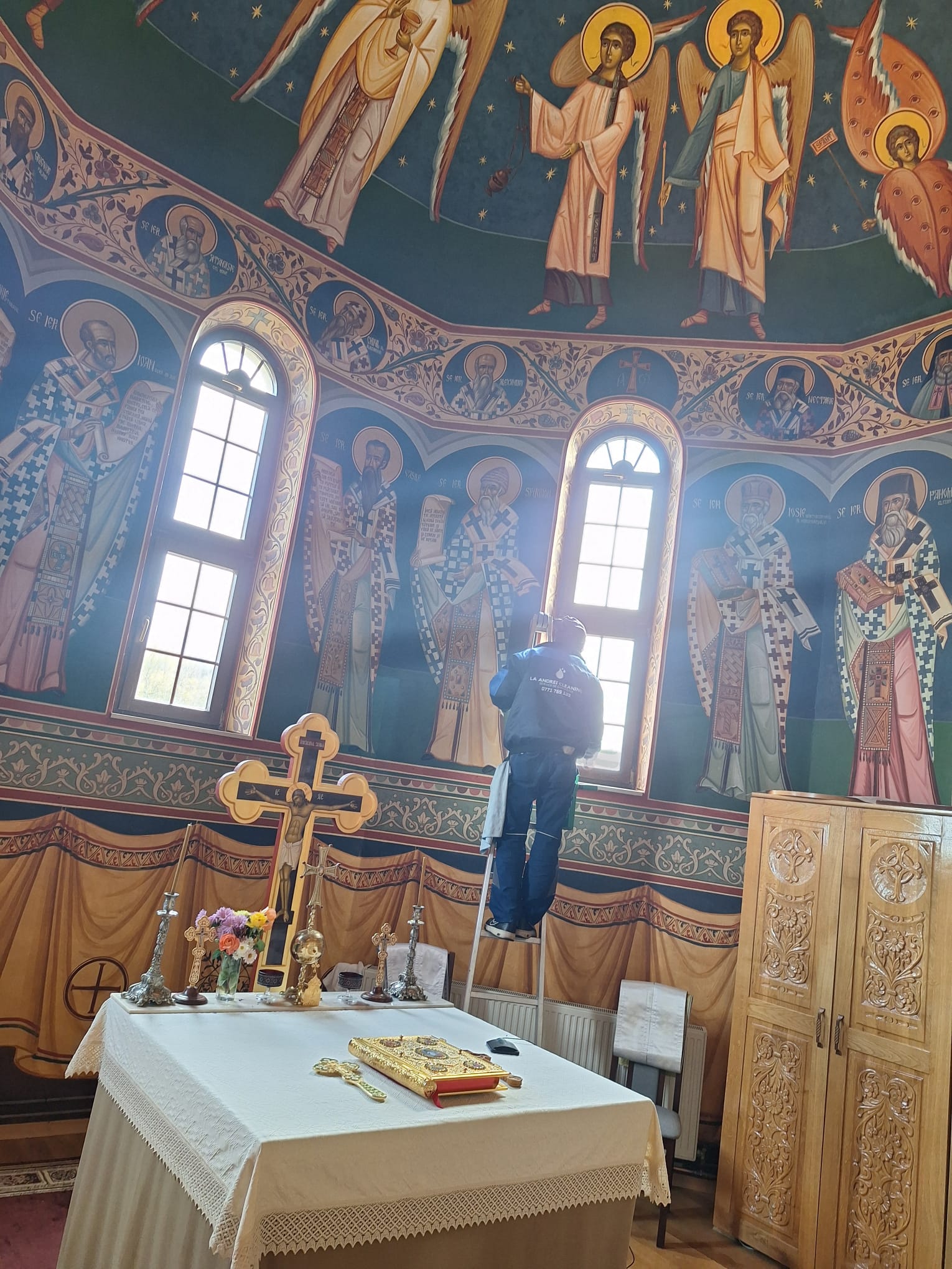 Doar anul acesta au avut peste 20 de astfel de solicitări. Geamuri, covoare, bănci și mobilier sacru – au curățat cu grijă și respect fiecare colț, oferind și reduceri bisericilor.