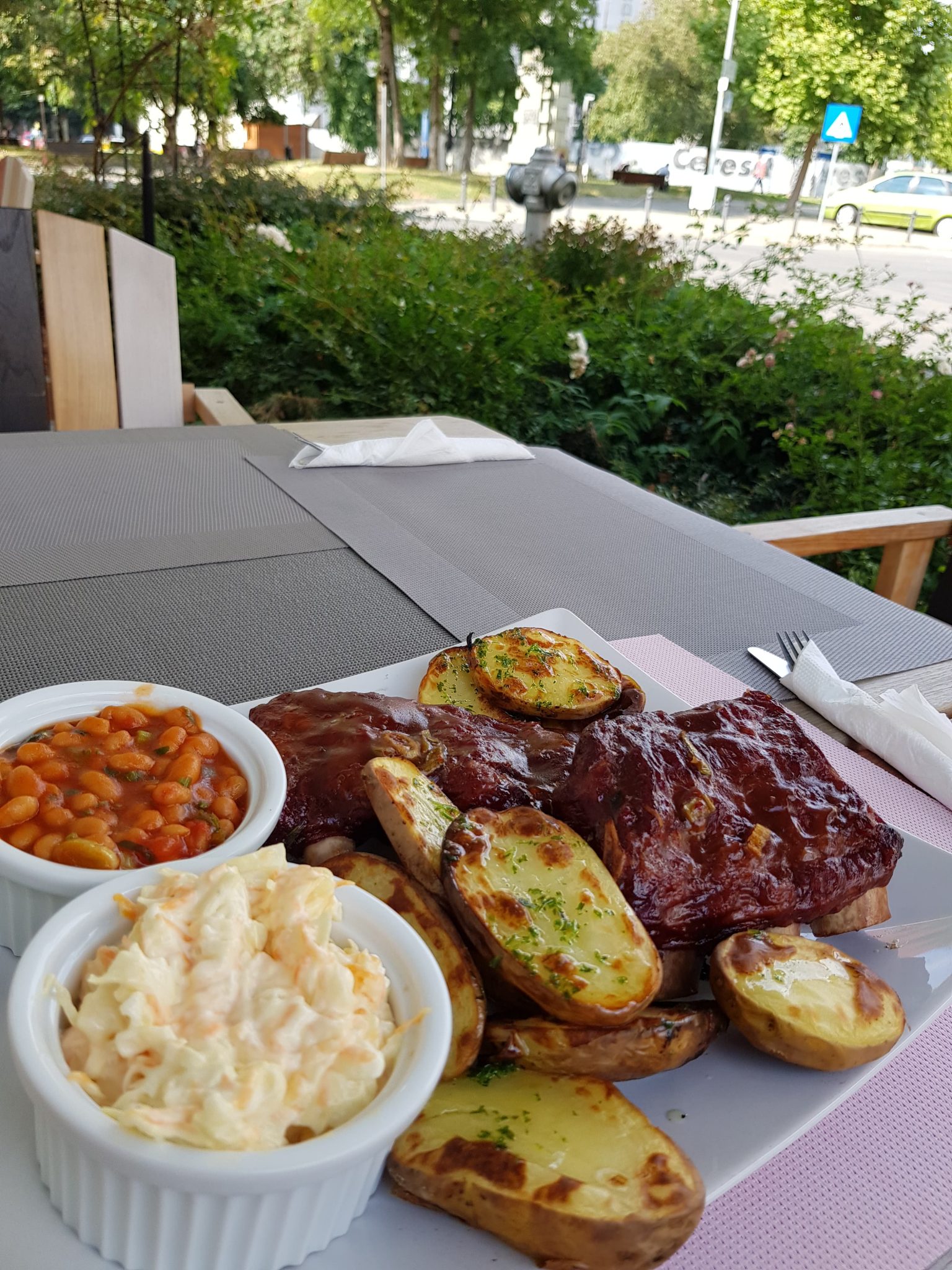 Și dacă am întrebat de ce sunt porțiile așa generoase, de se plâng clienții că nu le pot mânca 😉 , Bogdan ne-a răspuns că generozitatea porțiilor face parte din politica lor. Mai bine un client sătul și mulțumit, care cere să i se pună restul de mâncare la pachet, decât un client care să plece flămând de la masa lor.