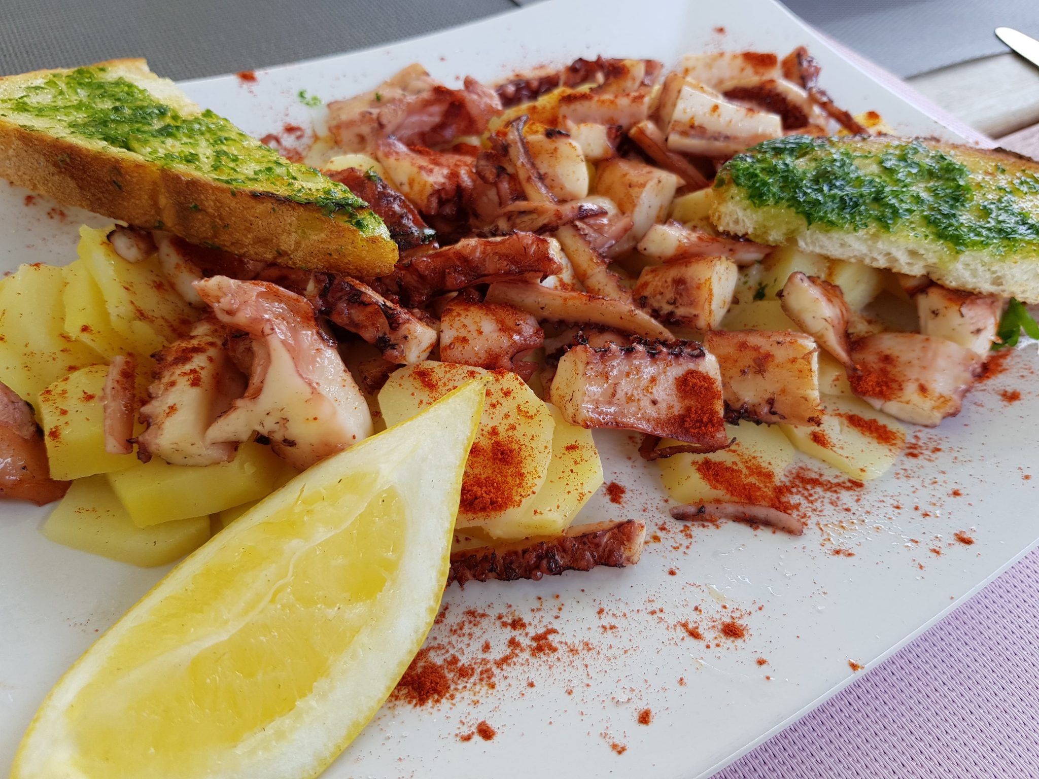 Una dintre specialitățile restaurantului, preluată, evident, din bucătăria spaniolă, este Caracatița a la Gallega. Merită încercată! Tentaculele de caracatiță perfect preparate se așează pe un pat de cartofi fierți, cu ulei și paprika. Să v-amintiți acest preparat și să-l încercați! E fabulos!