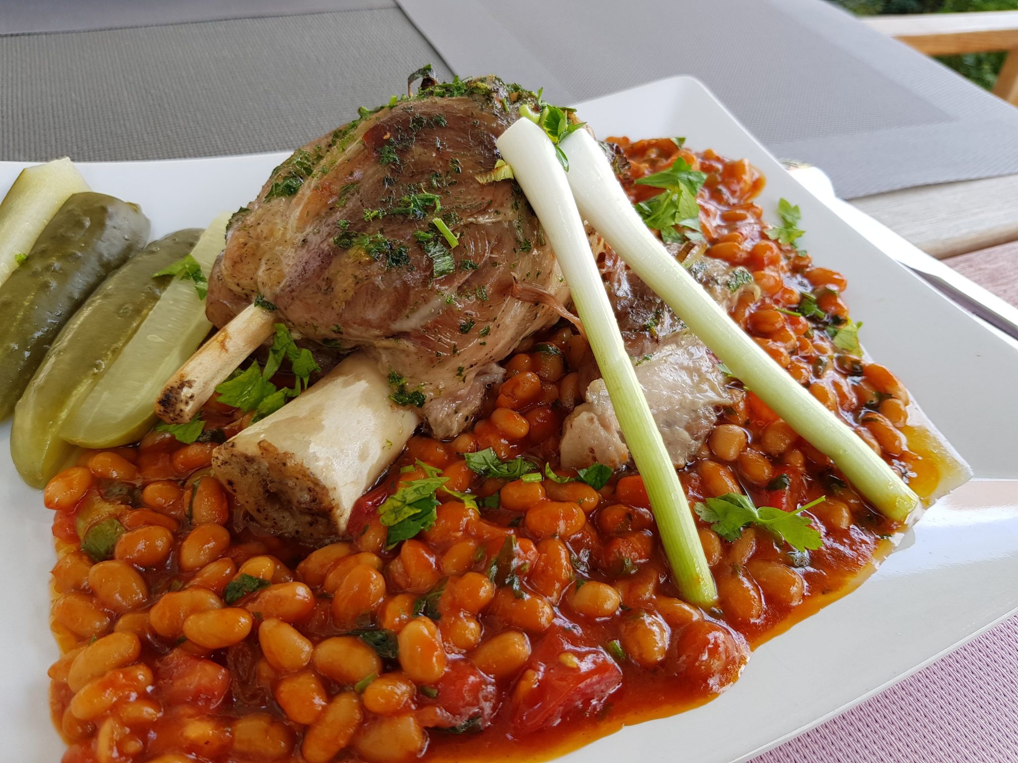PONT: Când v-o fi foame tare, tare, și vreți să mâncați pe săturate, mergeți în oricare dintre restaurantele L’Aroma și ziceți-le că ați citit în Bistrițeanul că au un ciolan de porc excelent cu iahnie de fasole sau varză călită. Arată ca în fotografia de mai jos.