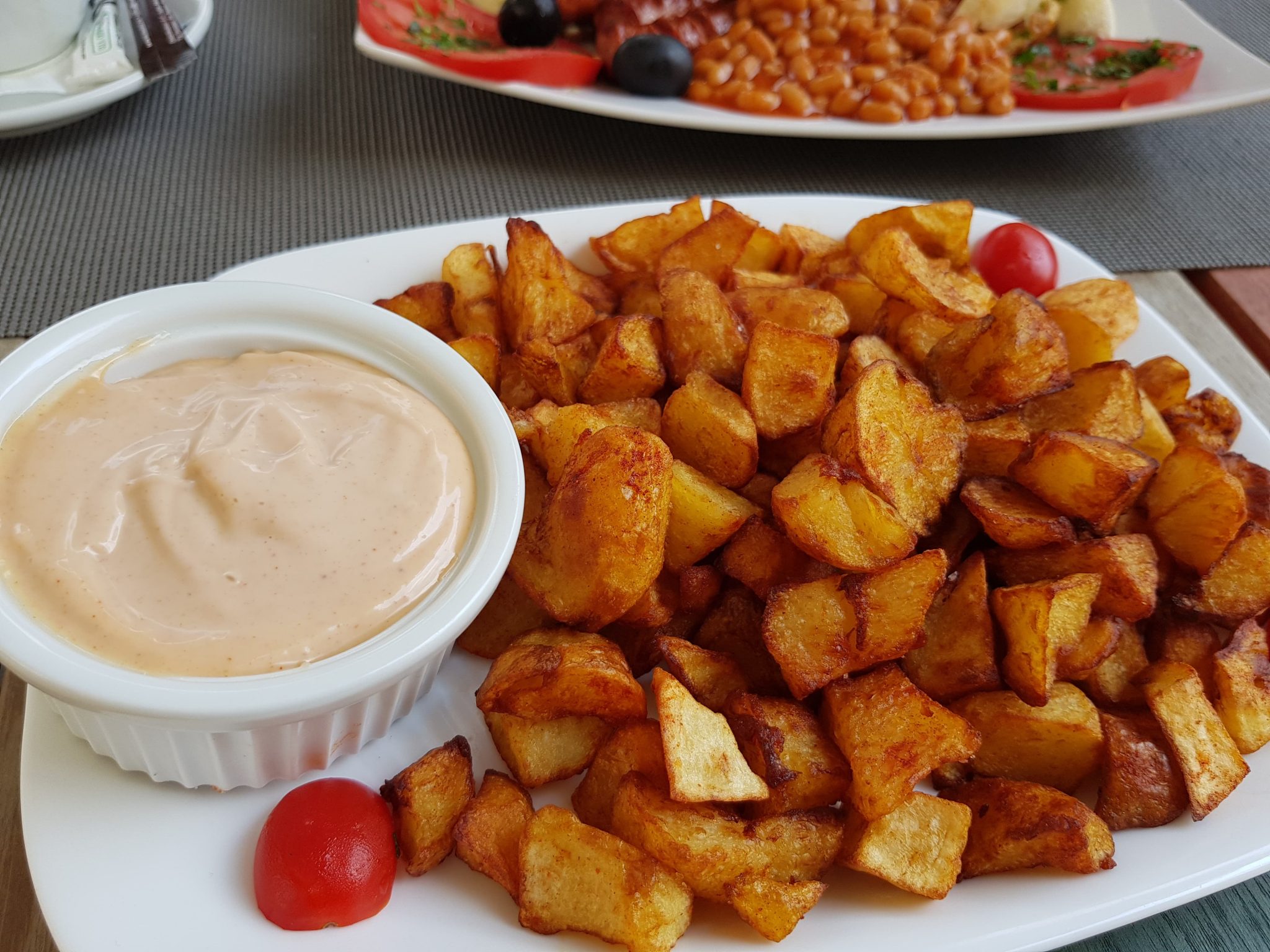 Cine a fost în Spania sigur a gustat Patatas Bravas. Aflați că îi găsiți acum și la L’Aroma 2, în Piața Centrală, lângă Primăria Bistrița. Și veți mai găsi și crema catalană, un desert din zona Cataluniei, o budincă cu o crustă de zahăr ars.