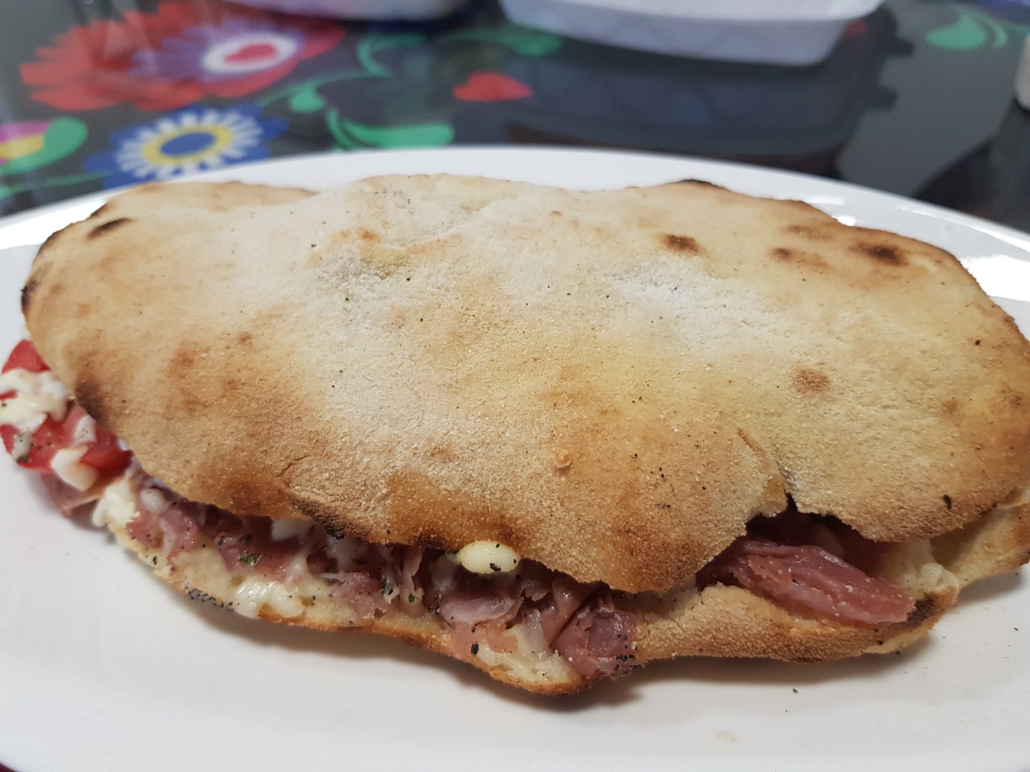 Așa sandwich n-ați mai mâncat și n-o să mai mâncați! E făcut dintr-un blat special de pizza, umplut cu tot ce vă place și copt la cuptor. O nebunie, v-am zis! Unul dintre secretele L’Aroma e pâinea, una specială, făcută în bucătăria lor, care se servește alaături de orice preparat din meniu, mai puțin la Meniul zilei, care are un alt concept.