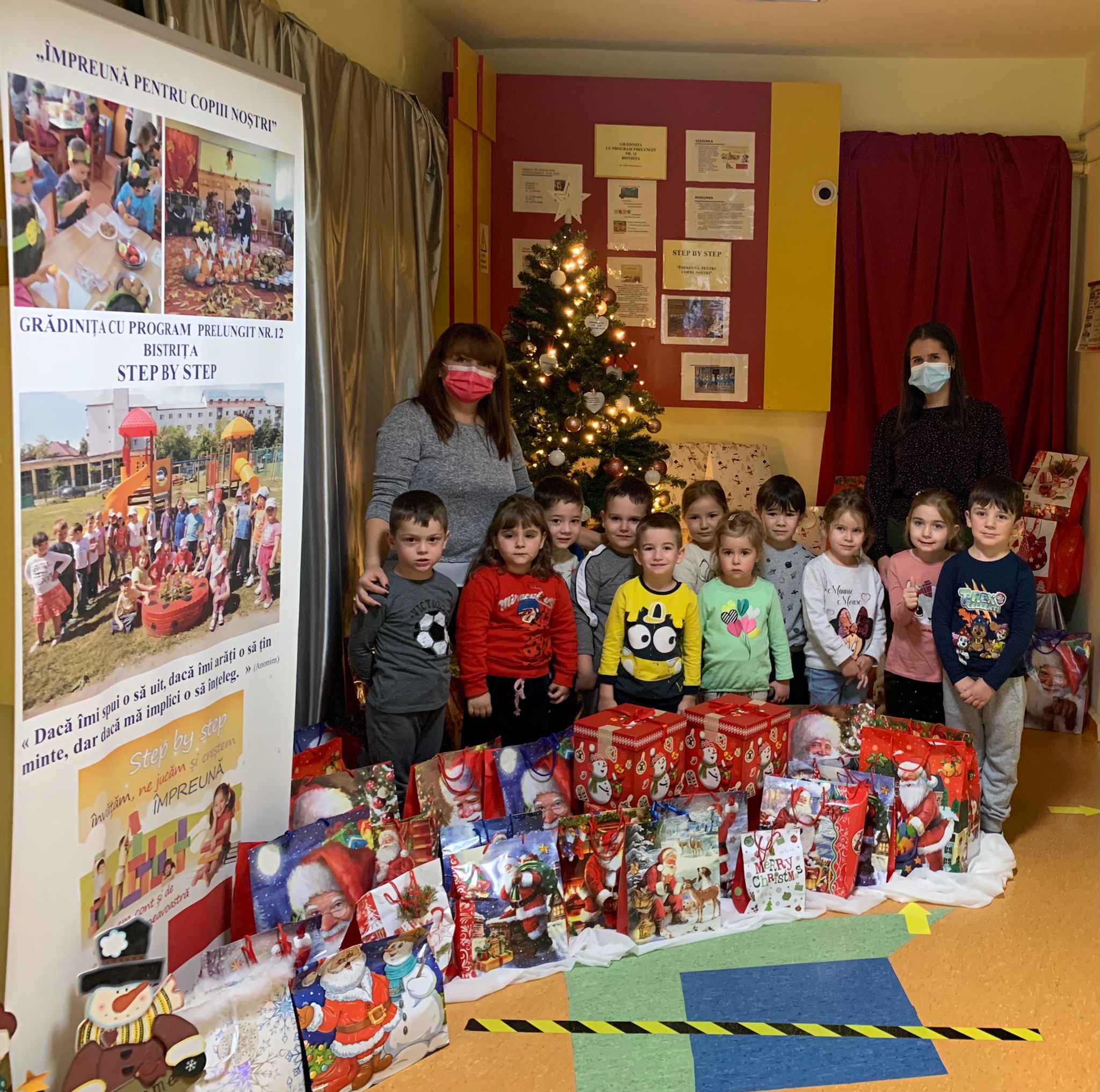 Încărcați cu 235 de pachete, preșcolarii Grădiniței cu Program Prelungit nr.12, Bistrița (structură Grădinița cu Program Normal nr.16) în parteneriat cu Asociația Impact i-au făcut fericiți, de Moș Nicolae, pe copiii mai puțin norocoși.