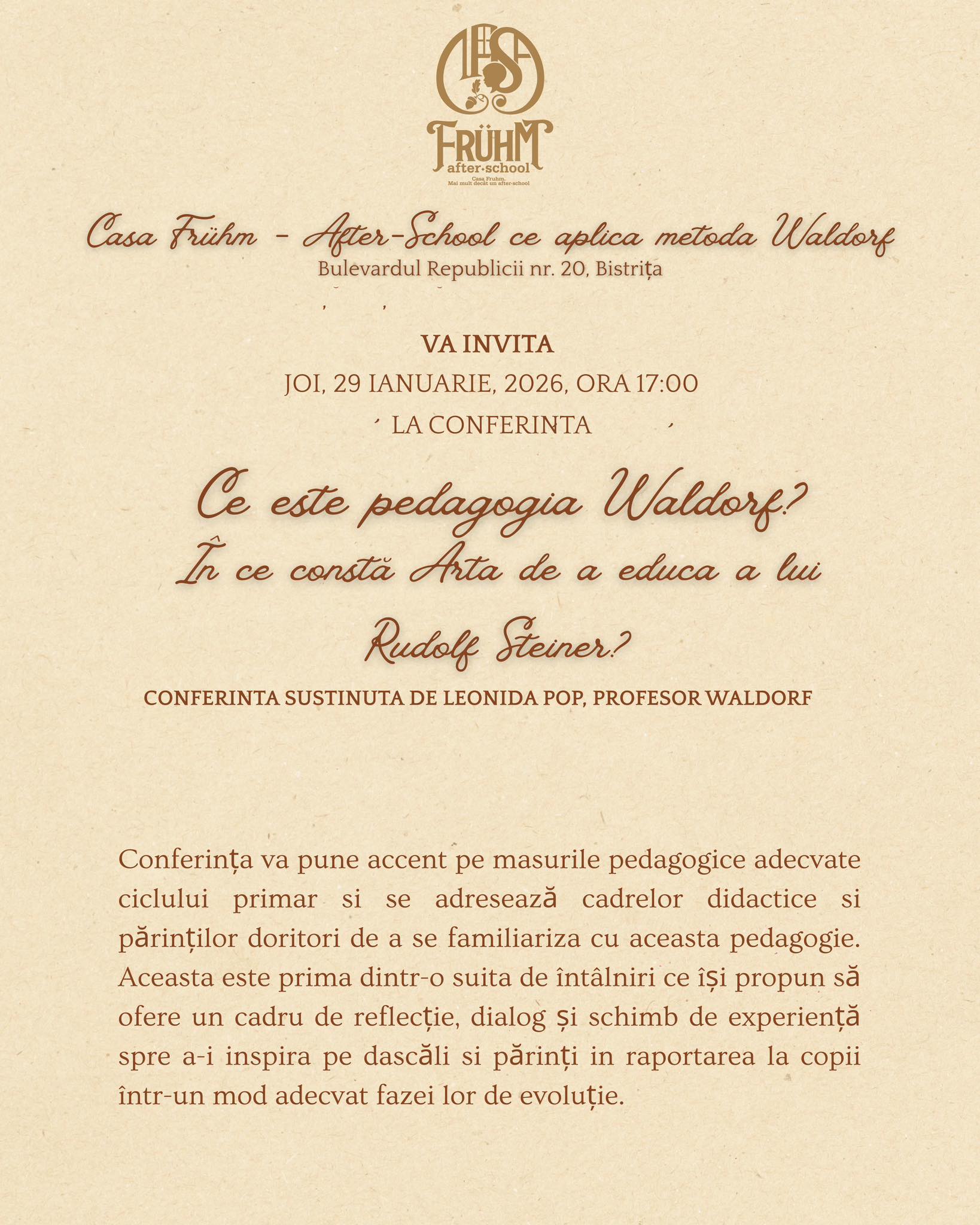 Casa Frühm ne invită la o întâlnire specială – dedicată pedagogiei Waldorf – o pedagogie vie, care vede copilul în integralitatea sa: trup, suflet și spirit.