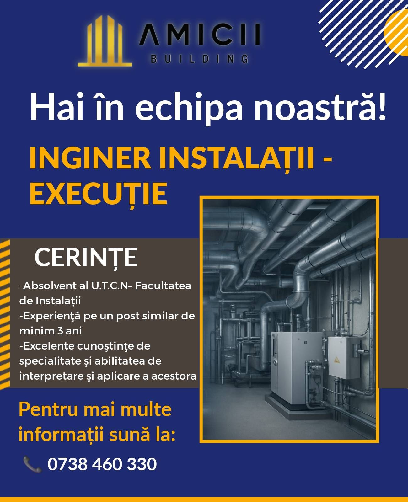 INGINER INSTALAȚII – Execuție – 1 post disponibil