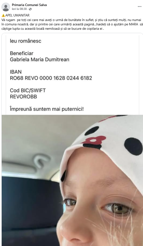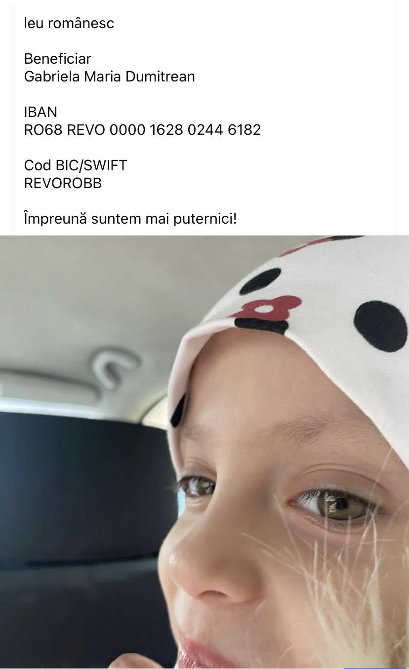 Mara a fost diagnosticată în noiembrie 2024 cu o formă agresivă de cancer. Ați donat atunci, și au trecut printr-un an de chin și provocări. ”Avem șansa unei operații care să îi facă bine și să nu mai trecem prin chimioterapie. Știu că la toată lumea îi e greu, dar nu aș fi apelat dacă nu era situația așa. Oricât de puțin, adunat de la mai mulți, putem să o facem pe Mara fericită!” a spus Gabi, mama micuței, cu tremur în glas.