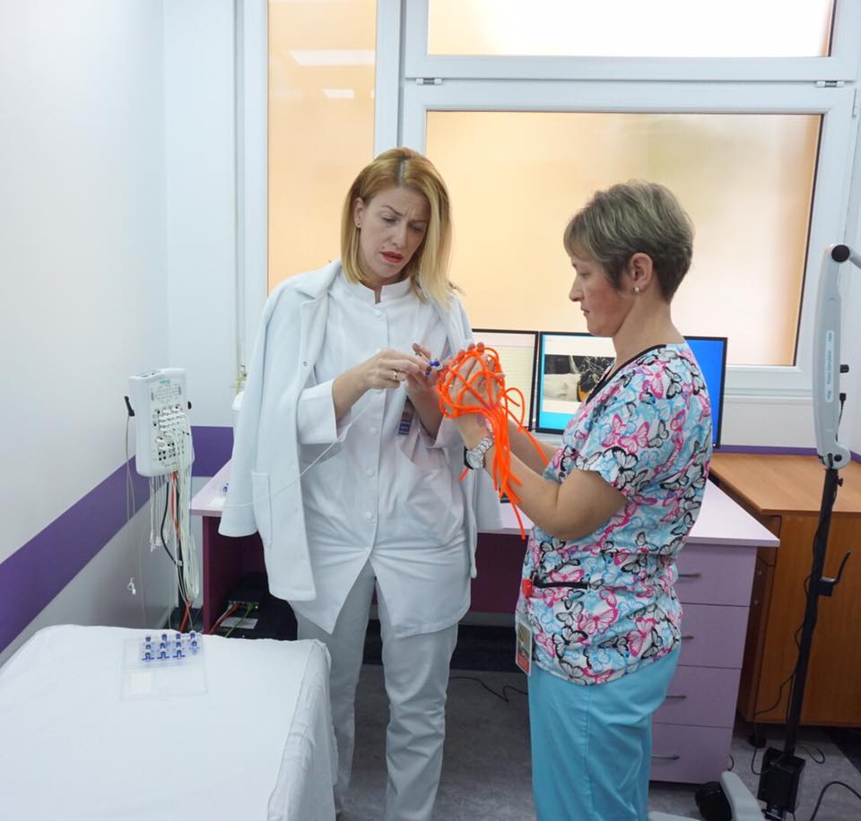 Dotarea cu acest electroencefalograf nou și performant a fost absolut necesară! Spitalul dispunea de unul, dar era foarte vechi, iar acum, cu această nouă achiziție putem efectua investigații de calitate și, foarte important, avem posibilitatea de a obține a doua opinie medicală, prin telemedicină. Chiar de aici, de la Spitalul Județean, cu ajutorul acestui sistem putem să dăm acces unui medic dintr-o clinică universitară sau dintr-un spital din rețeaua de telemedicină de oriunde din lume. Putem să ne consultăm, să facem schimb de experiență, atât în momentul înregistrării EEG în cabinet, cât și mai târziu, după înregistrarea traseului. Pentru noi, dar mai ales pentru pacient este extrem de util și de important! Mai mult, tot cu ajutorul acestui nou electroencefalograf, printre altele, putem să evaluăm leziunile cerebrale (accident vascular cerebral, tumori, traumatisme), tulburările de memorie, să depistăm unele encefalopatii datorate inflamației creierului, intoxicațiilor medicamentoase sau survenite în tulburari metabolice și chiar să-l utilizăm în stabilirea morții cerebrale. Este o cu adevărat o investiție în sănătate extrem de utilă!”, a declarat dr. Deak Maria Gabriela, medic primar în Neurologie