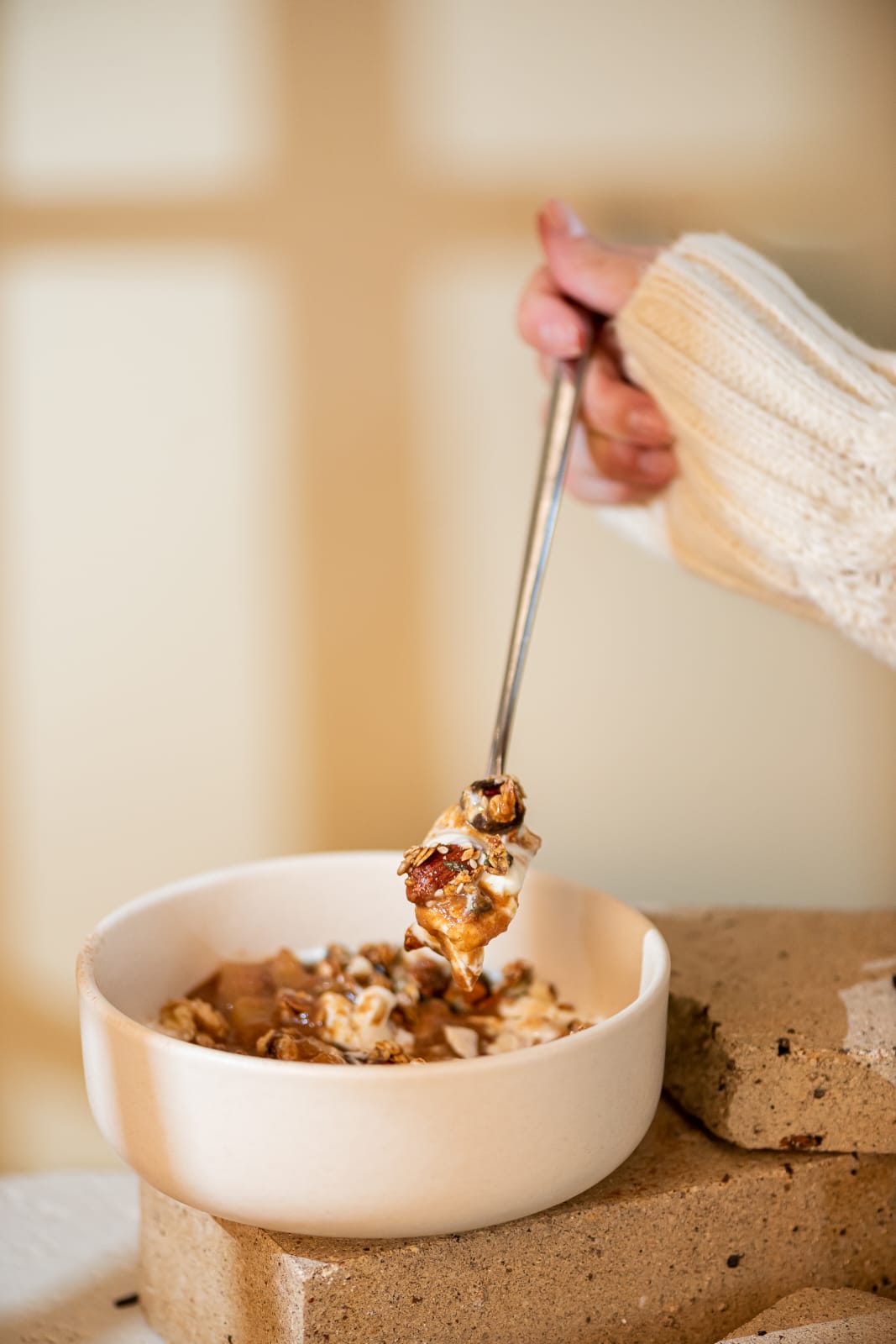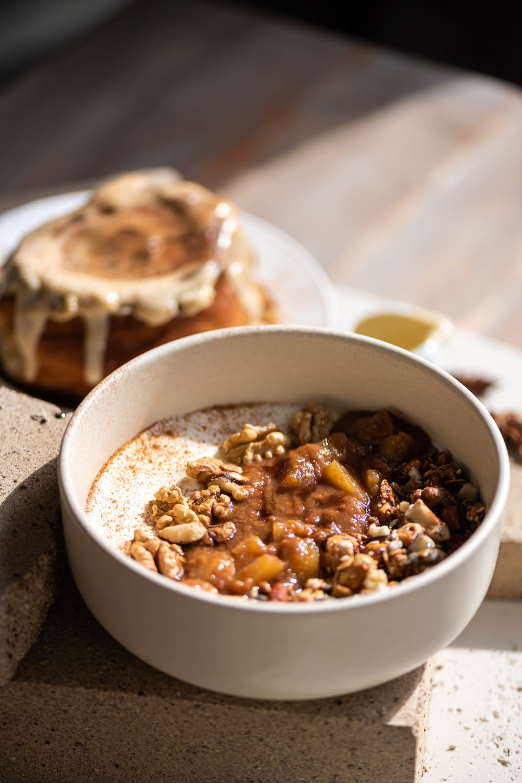 Meniul nu ar fi complet fără deserturi savuroase. Puteți opta pentru Fall Waffle – waffle cu măr copt, caramel, scorțișoară, nucă și înghețată de orez cu lapte sau pentru Cozy Crunch Yogurt, ce conține o combinație inedită de homemade granola, iaurt grecesc, măr caramelizat, scorțișoară și nucă.
