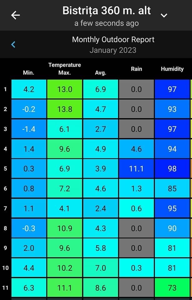 Cinci zile din ianuarie, până acum, au fost prezentate temperaturi de peste 10 grade Celsius și în două zile, peste 9 grade Celsius. Acest lucru este anormal, iar Asociația “Meteo BN” a prezentat situația inclusiv într-un tabel.