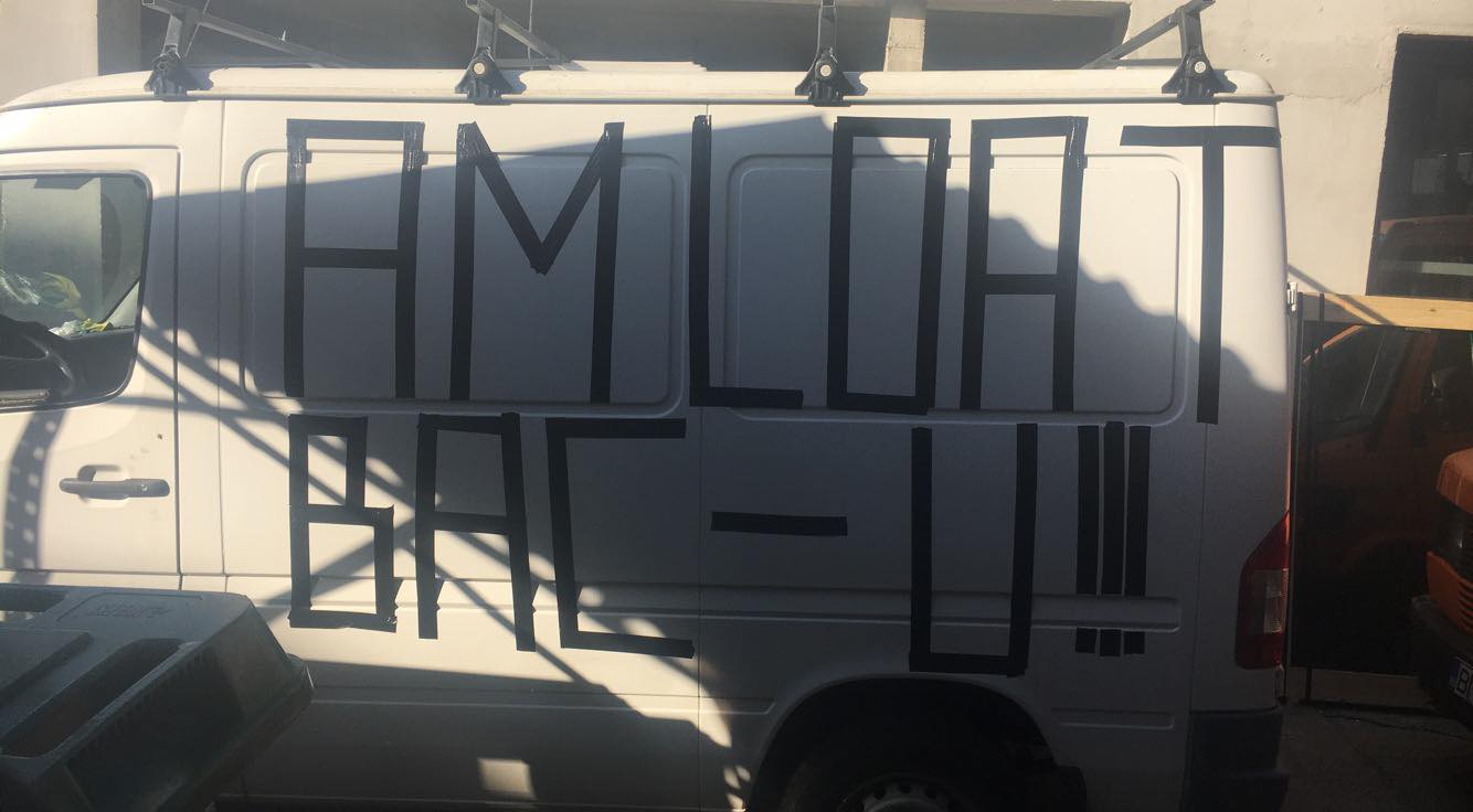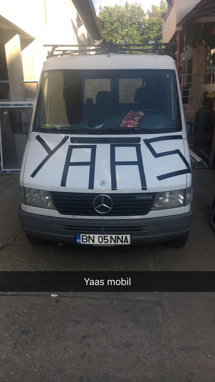 „Eu și cu un bun prieten de-al meu am dus treaba la capăt. Mașina e a mea, mai precis aparține de firma alor mei. Am scris cu bandă abrazivă, care apropos, să nu facă nimeni aceeași treabă că se ia jos extrem de greu. Marți seara am scris, aici fiind două variante. Dacă îl iau, ies cu ea în oraș, dacă nu, o să rămână în curte”, a spus tânărul.