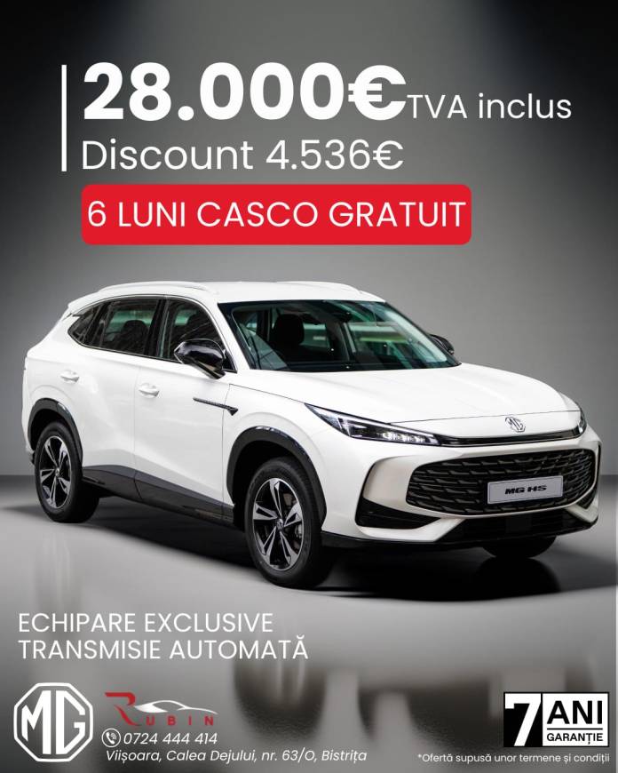 Reprezentanța Rubin Bistrița a lansat o ofertă specială pentru acest SUV cu un interior spațios, finisaje premium și MG Pilot – sistem avansat de asistență la condus.
